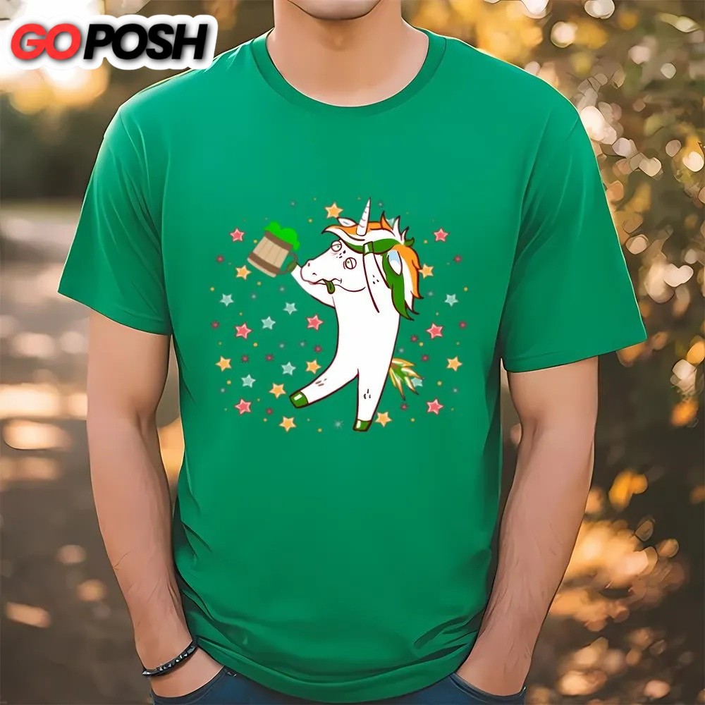 St Patricks Day T Shirt, Drunk Unicorn with Beer Funny St Patricks Day T-Shirt, Funny St Patricks Day Shirts