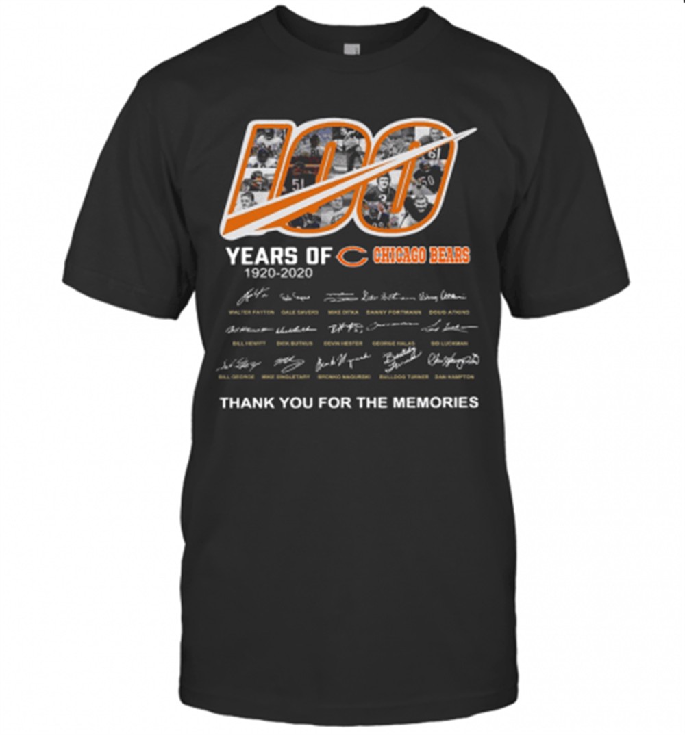 100 Years Of Chicago Bears Thank You For The Memories Signatures T-Shirt