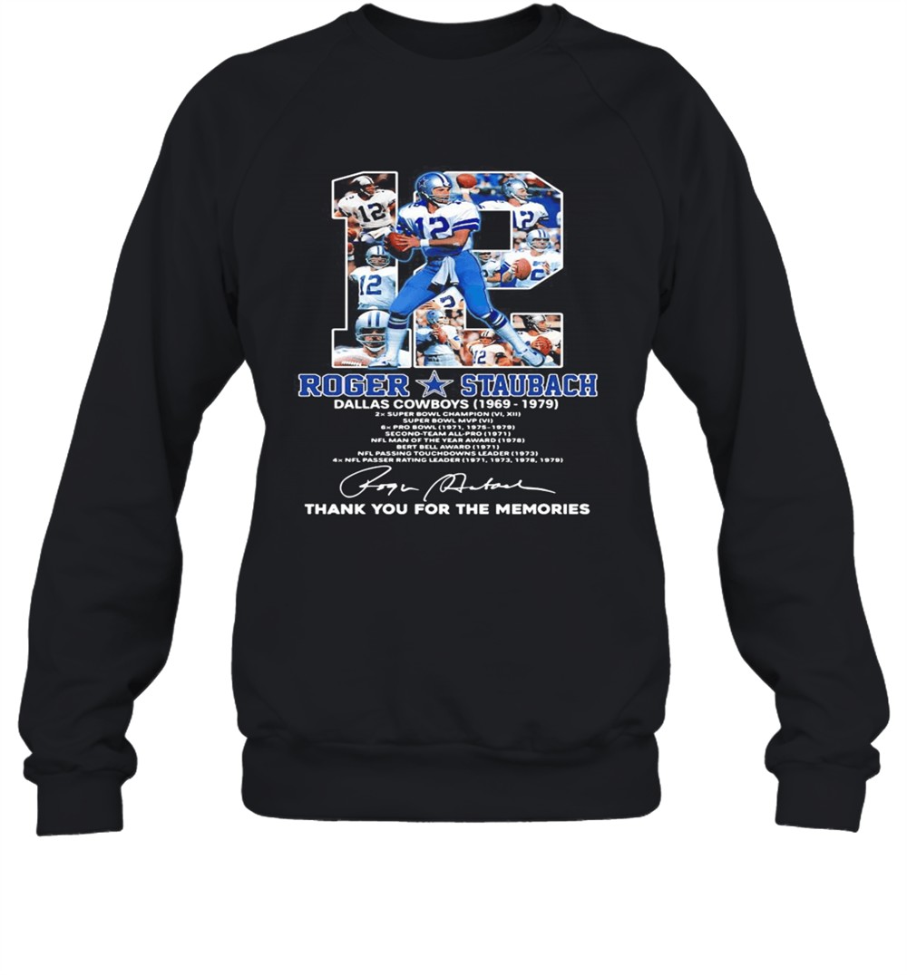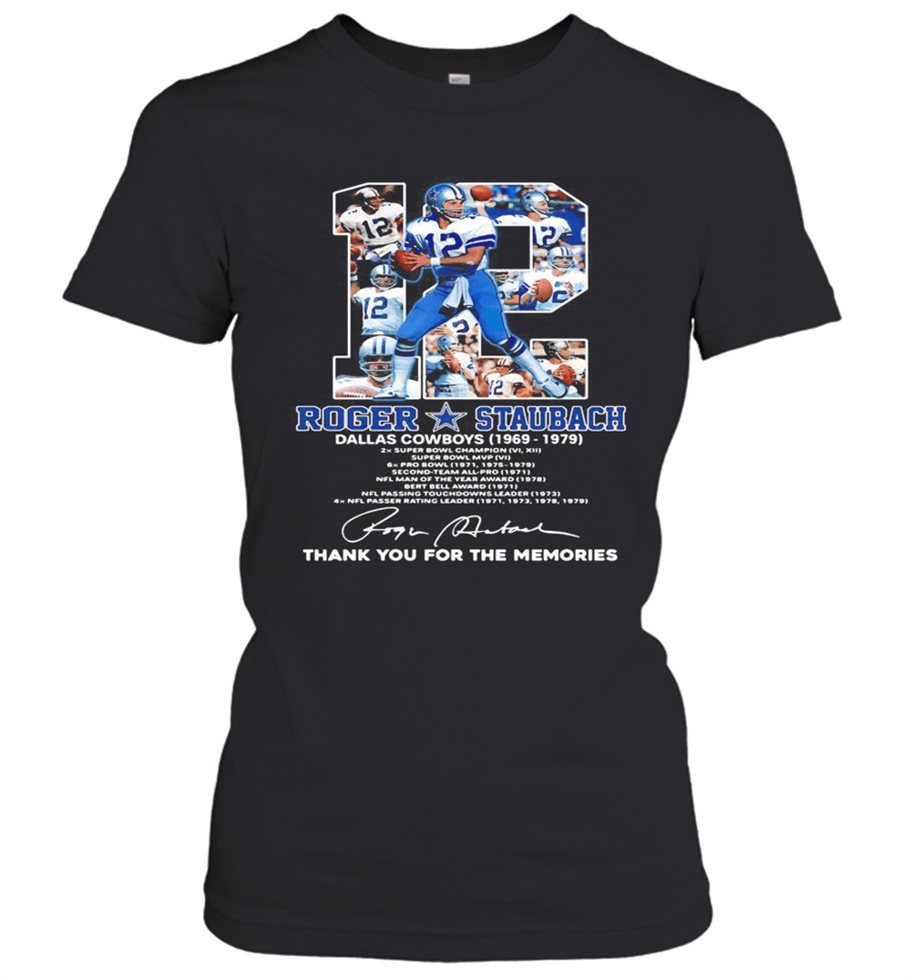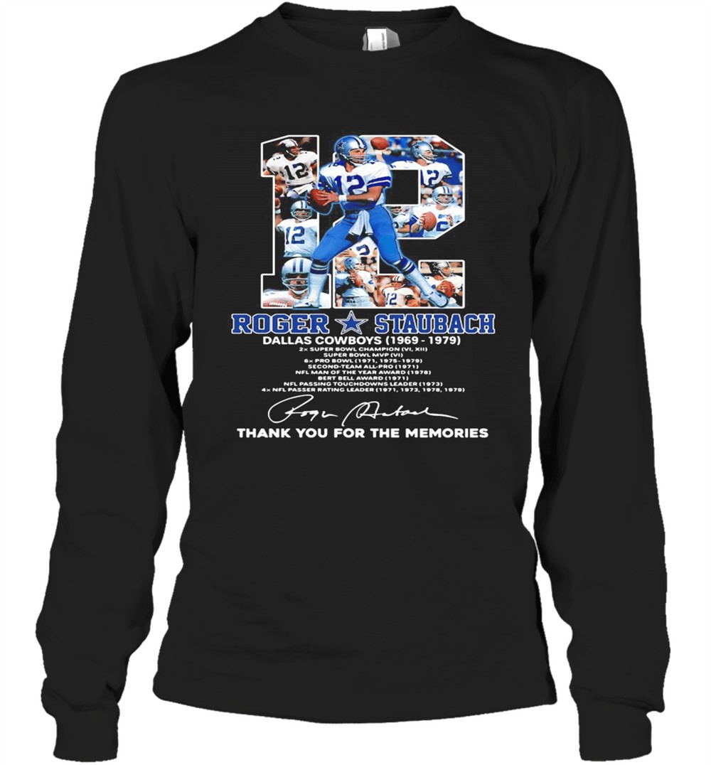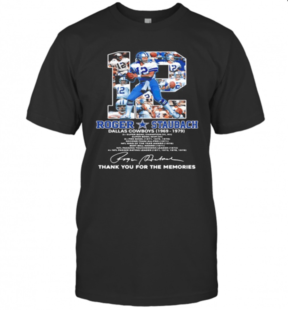 12 Roger Staubach Dallas Cowboys 1969 1979 Thank You For The Memories Signature T-Shirt
