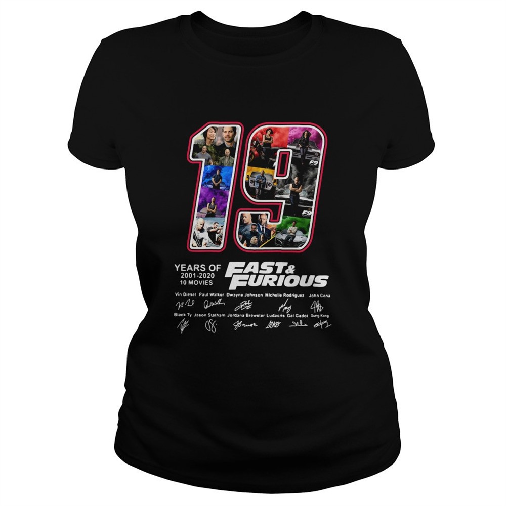 19 Years Of FastFurious 2001 2020 10 Movies Signatures shirt