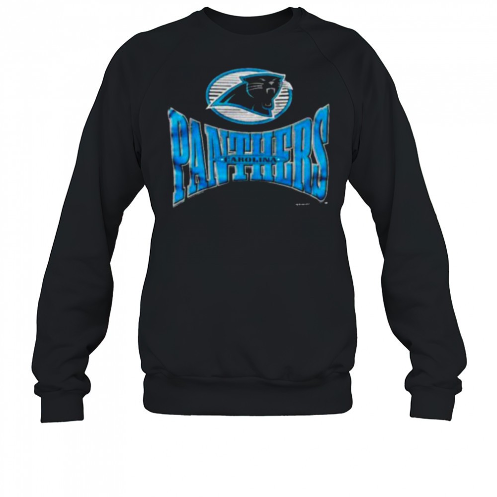 1996 Carolina Panthers Vintage Black Logo 7 Squeeze Spellout Logo NFL Shirt