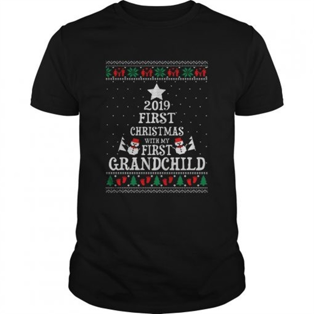 2019 First Christmas with my first grandchild ugly christmas shirt