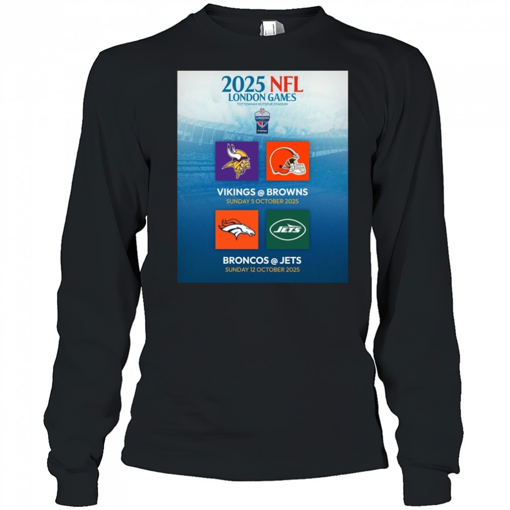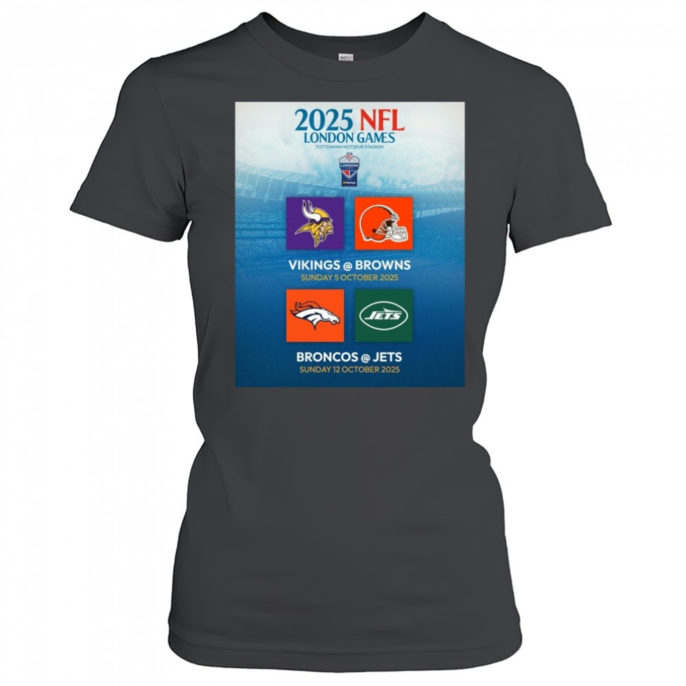 2025 NFL London Games Tottenham Hotspur Stadium Vikings Vs Brown 5 Oct Broncos Vs Jets 12 Oct Poster t-shirt