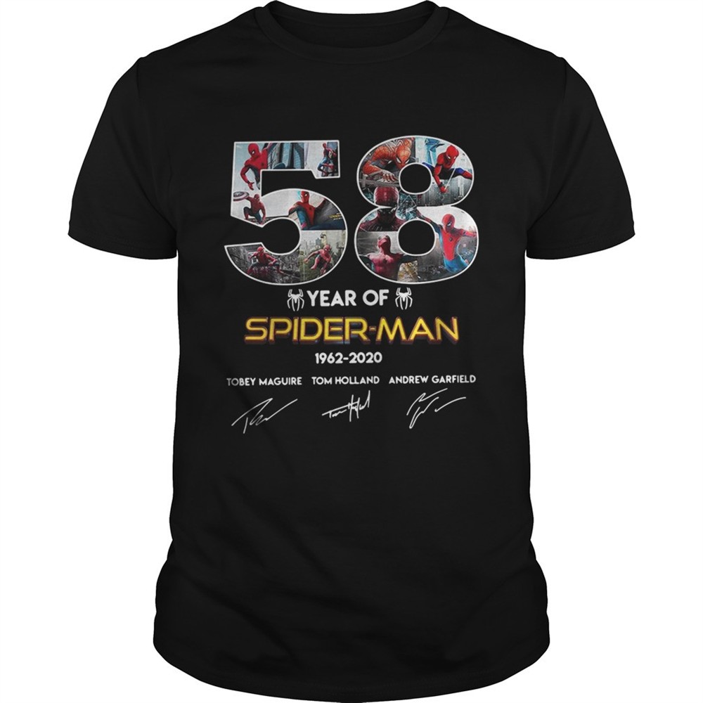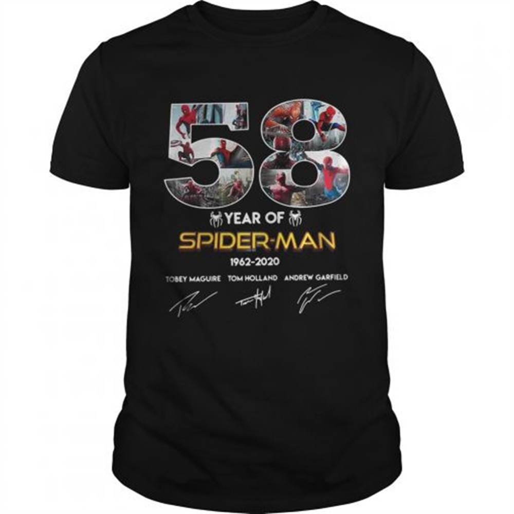 58 year of SpiderMan 19622020 Tobey Maguire Tom Holland Andrew Garfield shirt