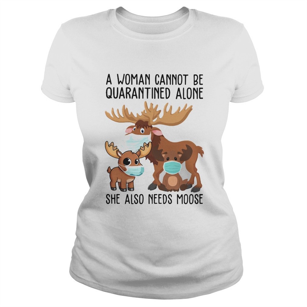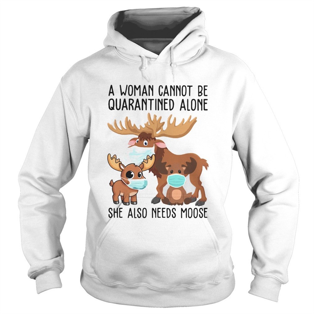 A Woman Cannot Be Quarantined Alone She Also Needs Moose Face Mask shirt