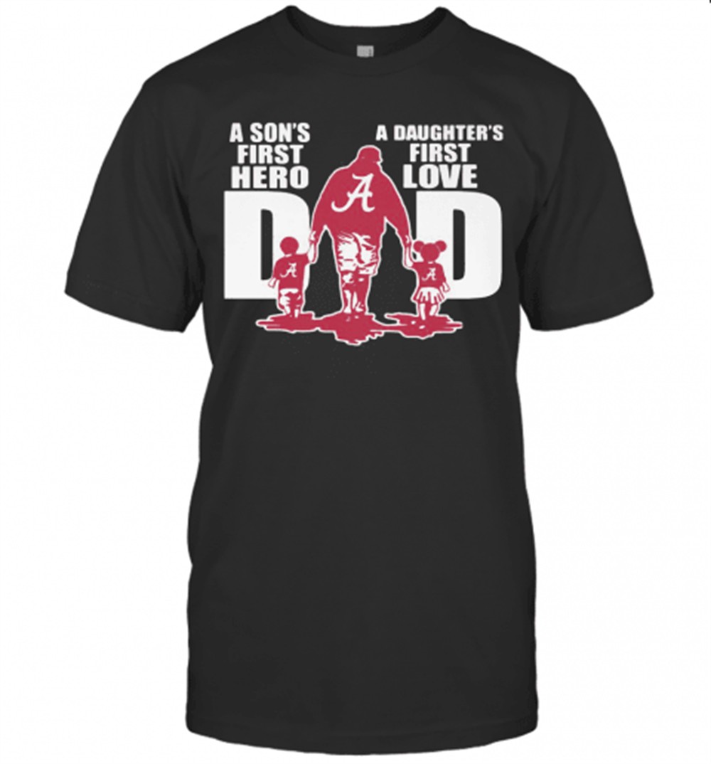 Alabama Crimson Tide A SonS First Hero A DaughterS First Love Dad Happy FatherS Day T-Shirt