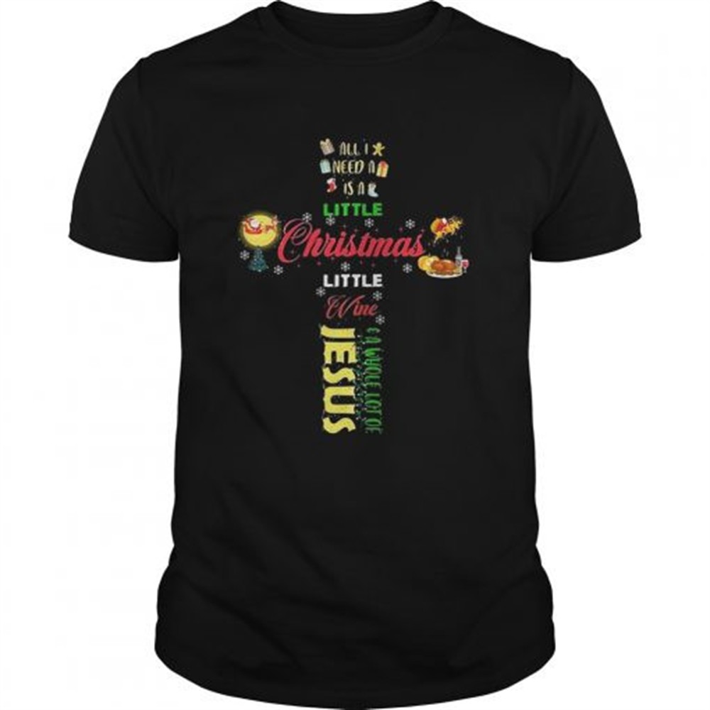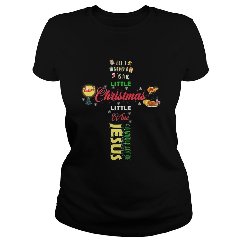 All I need a is a little Christmas little wine a whole lot of Jesus shirt
