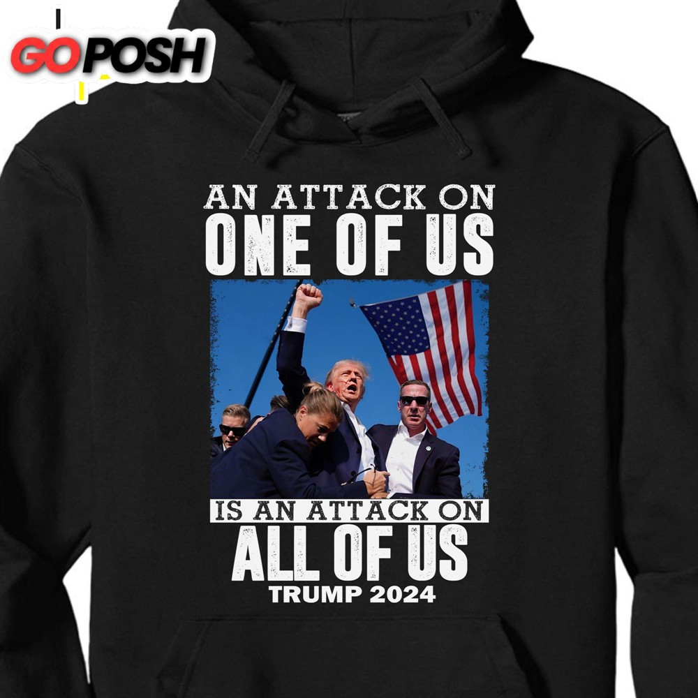 An Attack On One Of Us Trump Fight 2024 Shirt Trump 2024 Pennsylvania Rally Trump Supporters Shirt Dark
