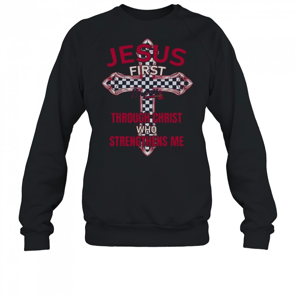 Atlanta Braves Jesus First Through Christ Who Strengthens Me T-Shirt