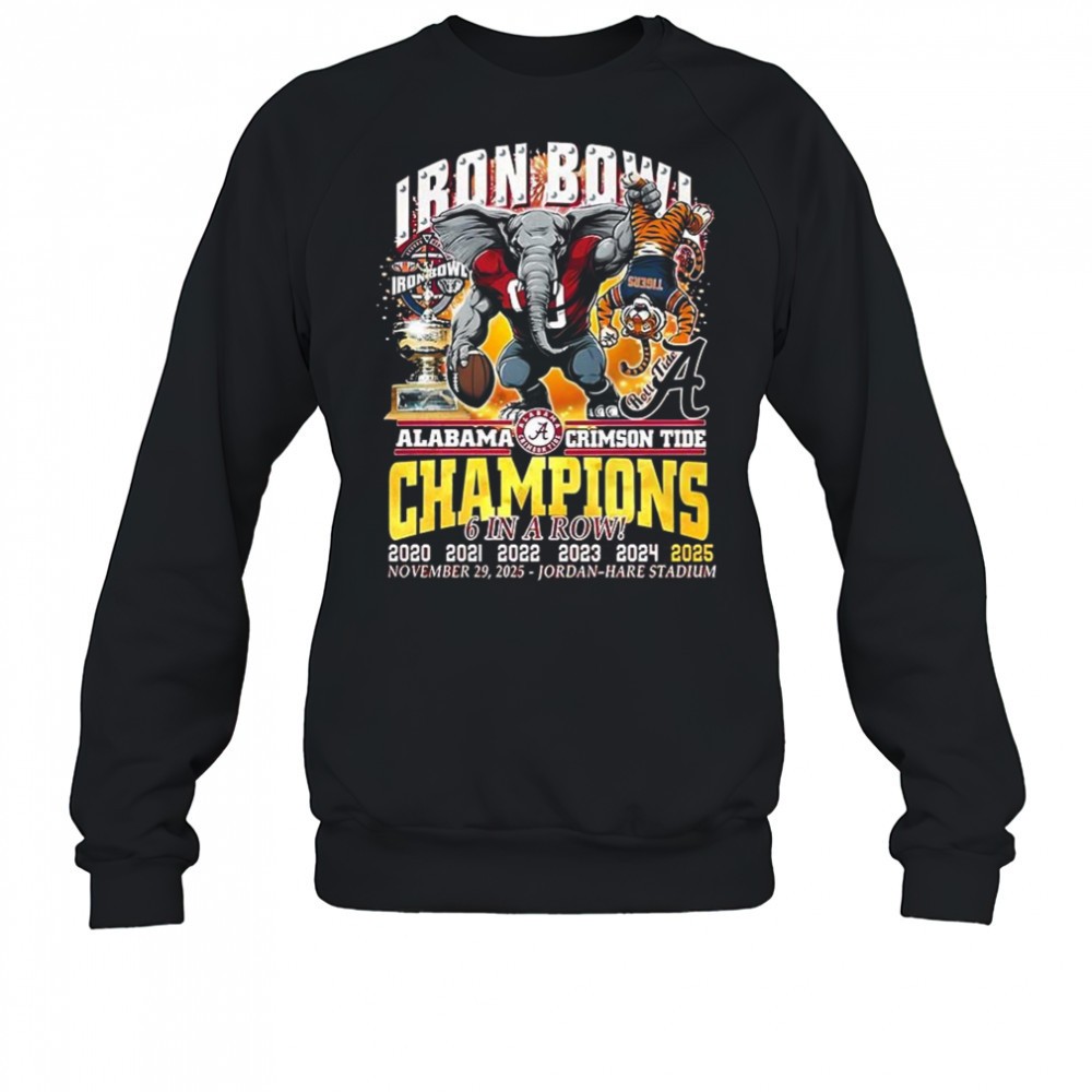 Auburn Tigers beat Alabama Crimson Tide NCAA Iron Bowl Champions 2025 6 in a row mascot shirt