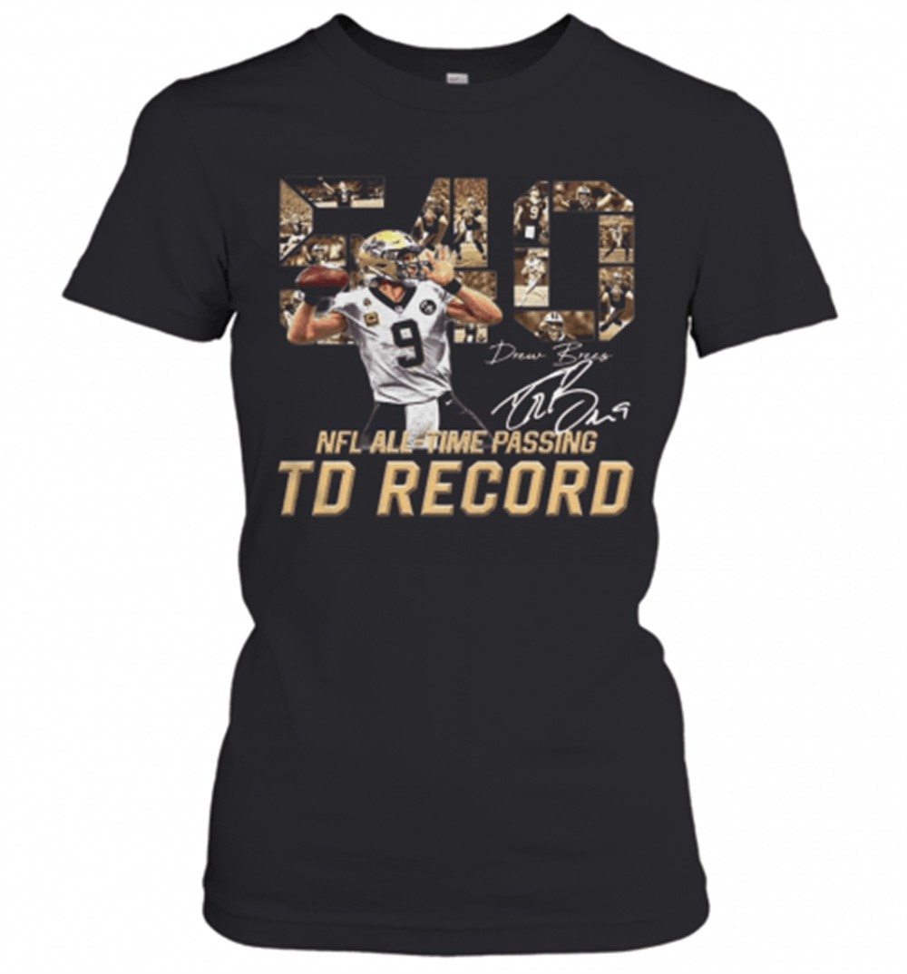 Awesome 540 Drew Brees Touchdowns Nfl All Time Passing Records Signature T-Shirt