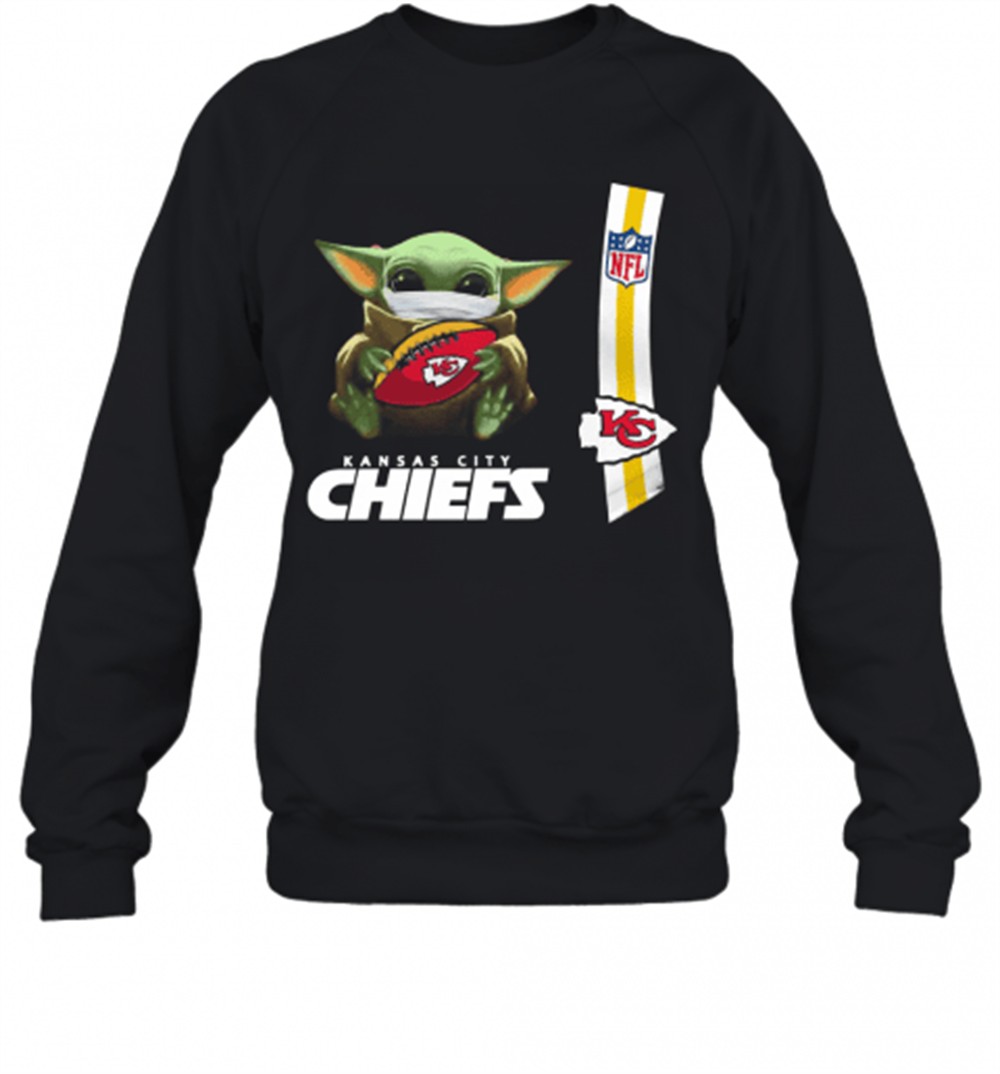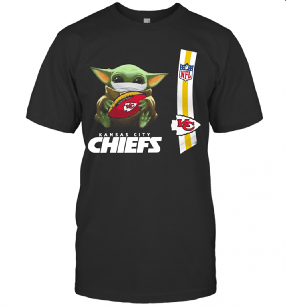 Baby Yoda Mask Hug Kansas City Chiefs Ball NFL T-Shirt