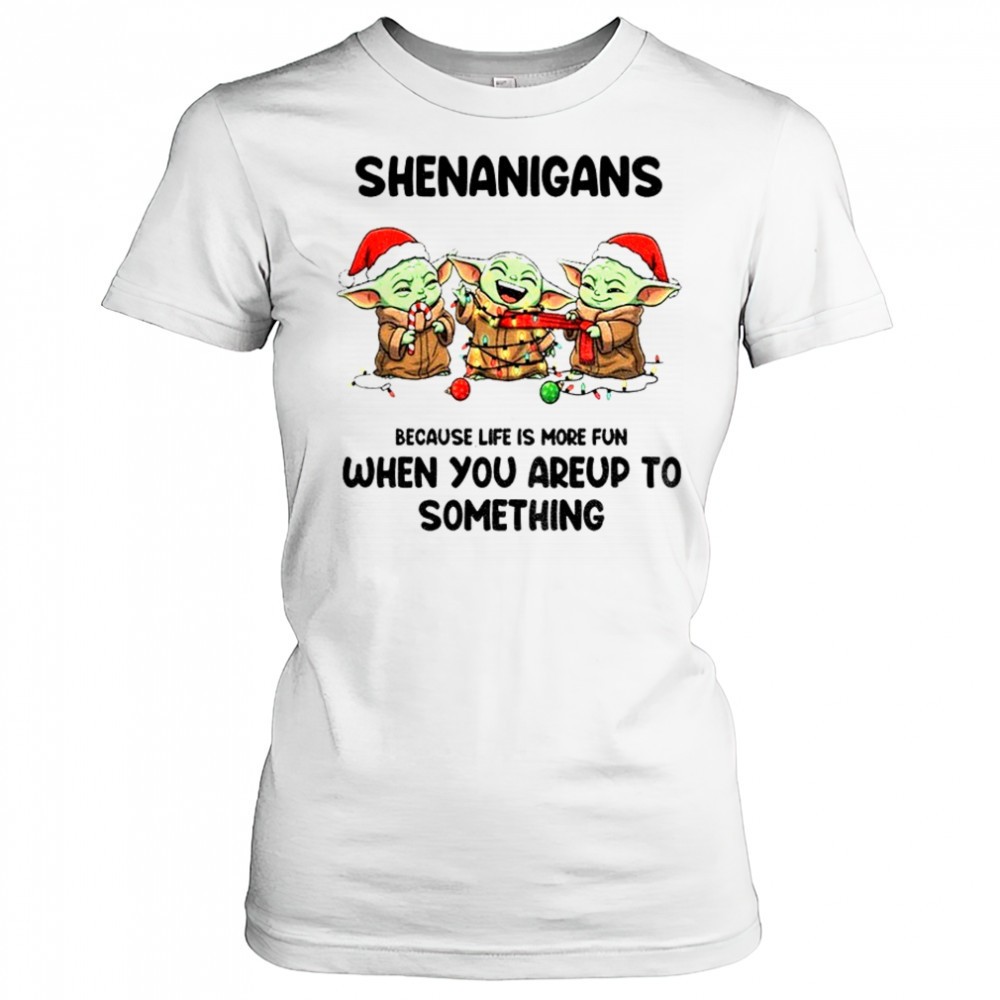 Baby Yoda Xmas Shenanigans because life is more fun when youre up to something Christmas shirt
