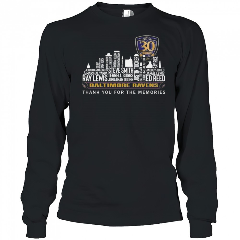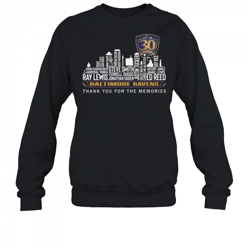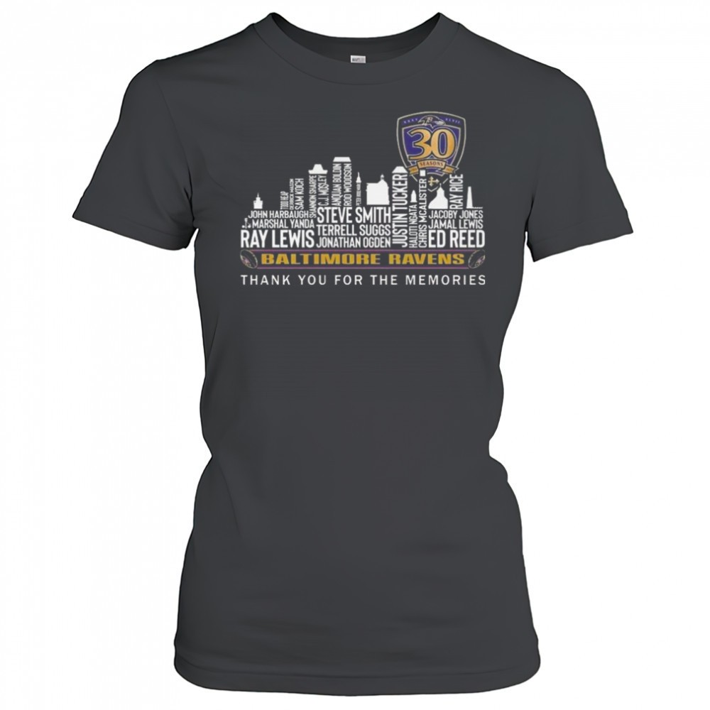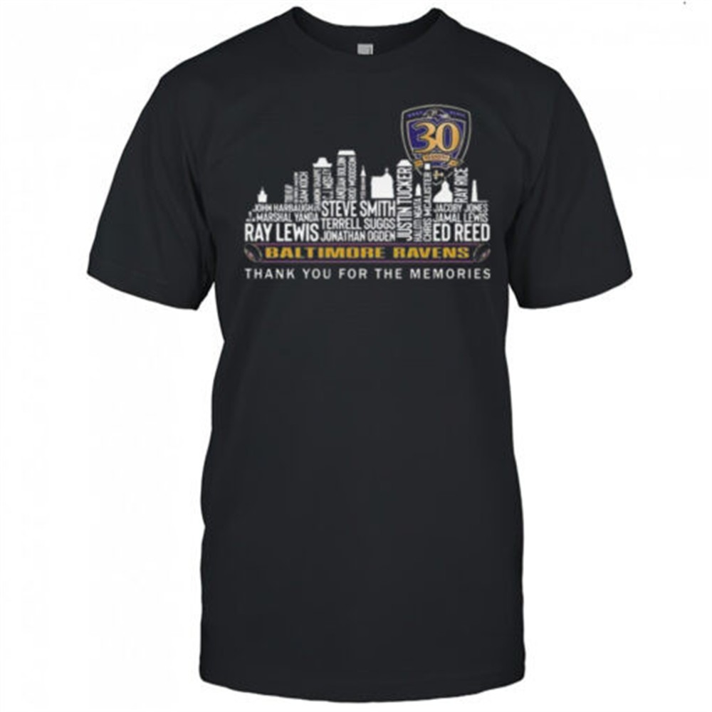 Baltimore Ravens 30 Seasons Thank You For The Memories Skyline Names 2025 Shirt