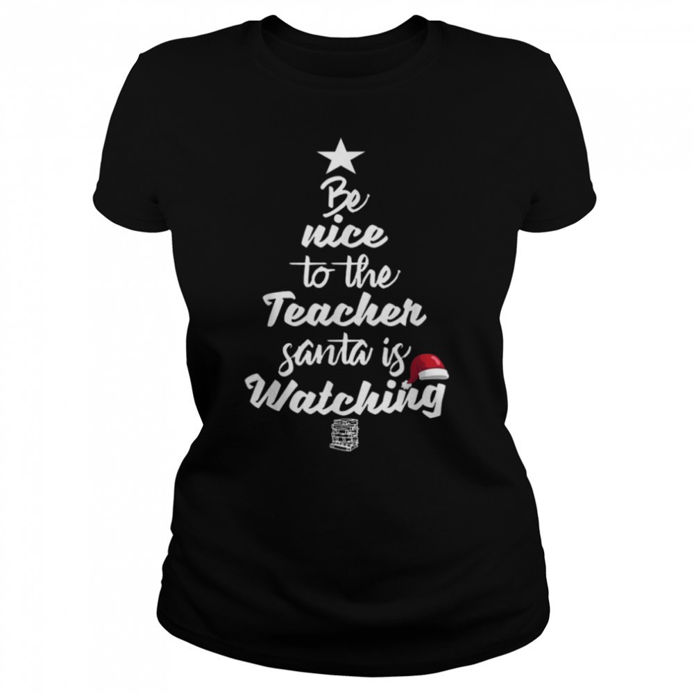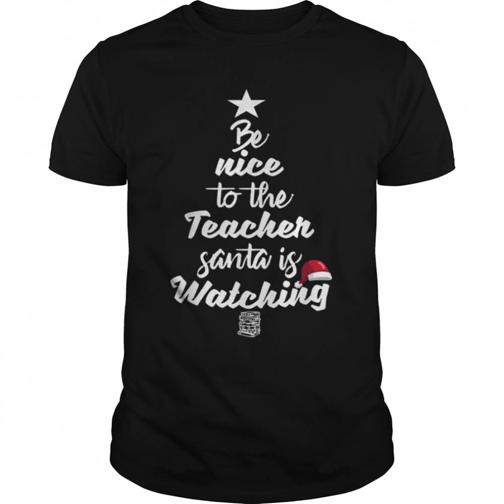 Be Nice To The Teacher Santa Is Watching Christmas T-Shirt B0B7DWWV69