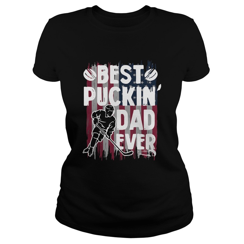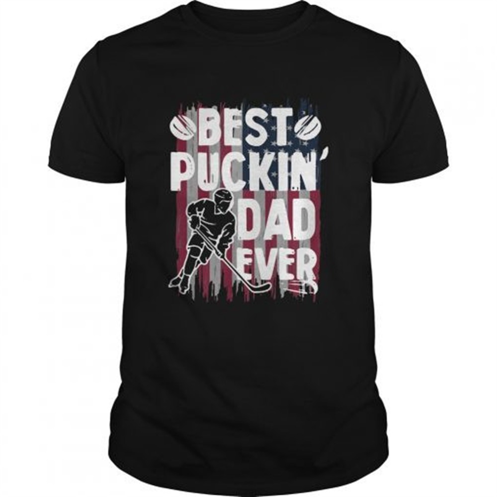 Best Puckin Dad Ever Hockey American Flag shirt