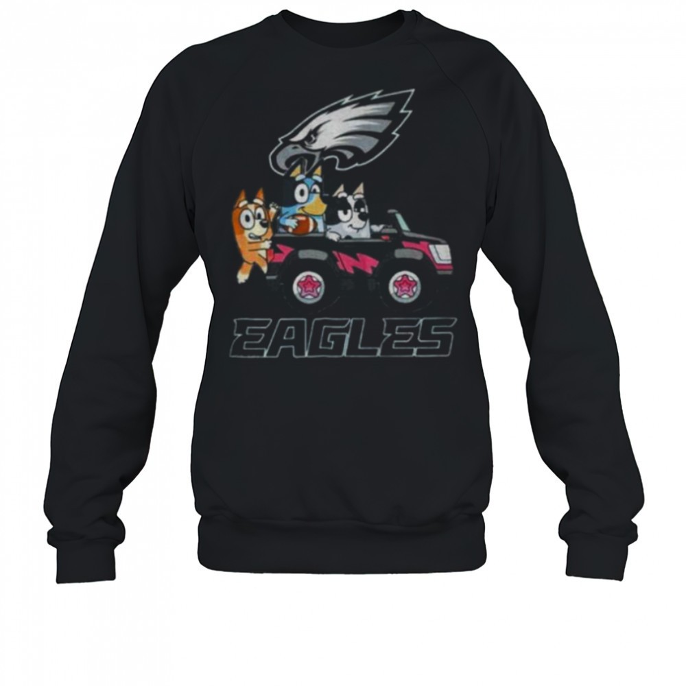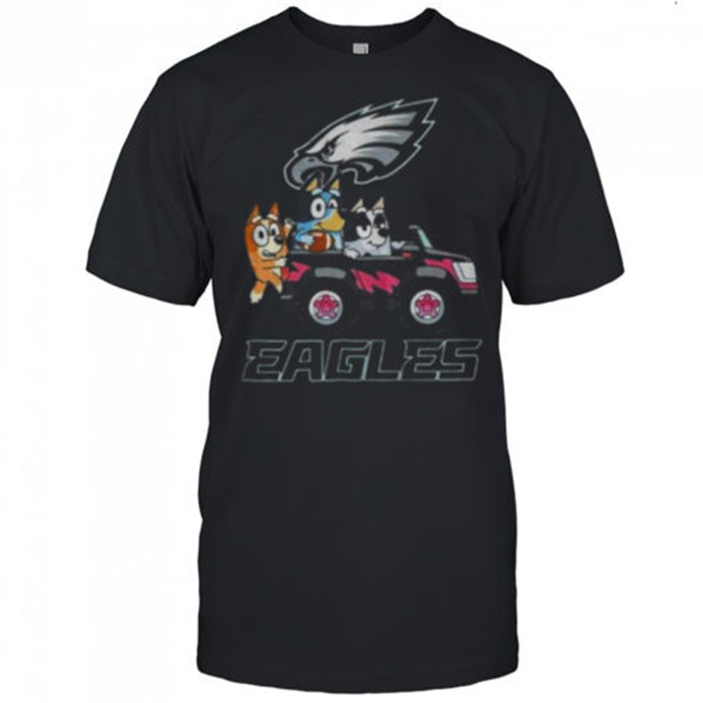 Bluey and Philadelphia Eagles driving a car funny shirt