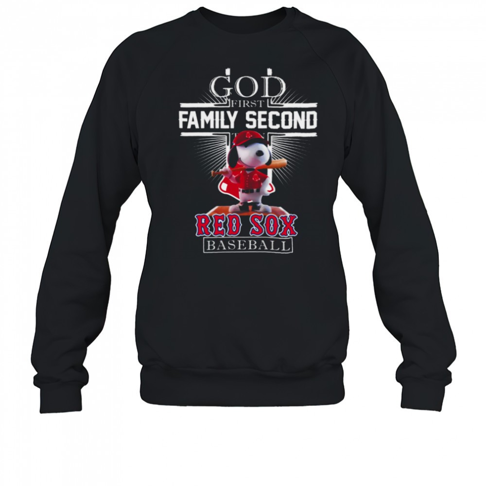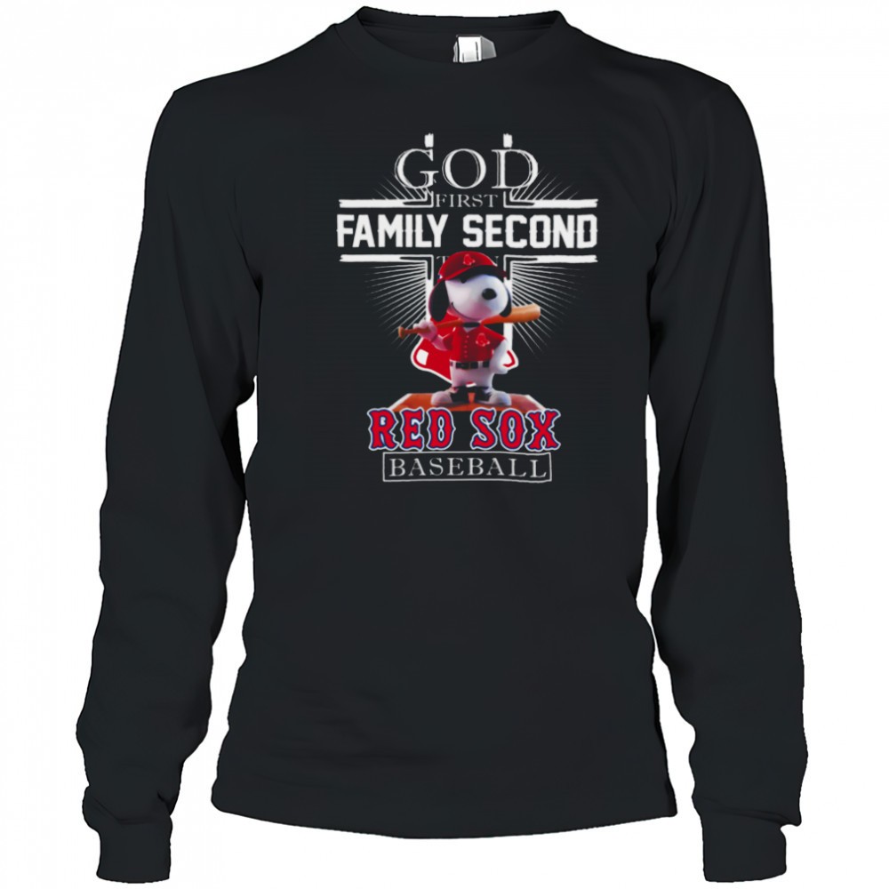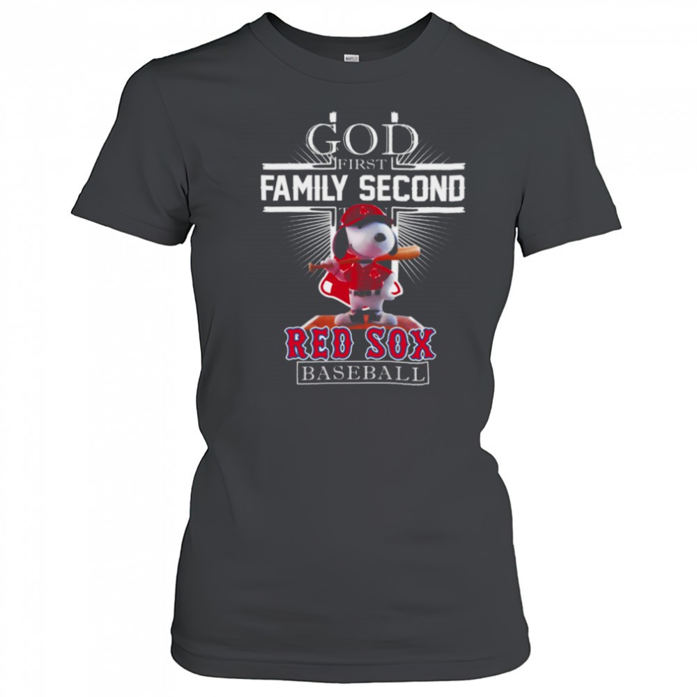 Boston Red Sox Merch Snoopy God First Family Second Then Boston Red Sox Baseball T Shirt
