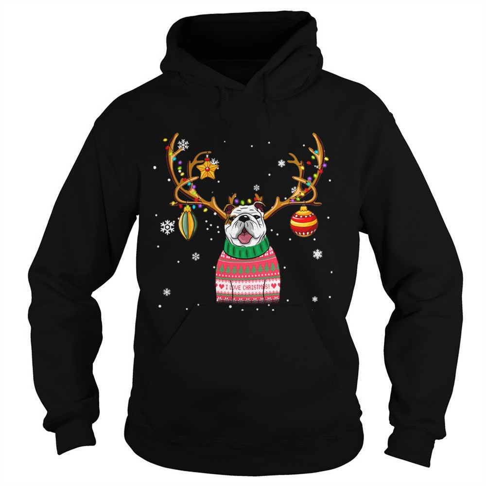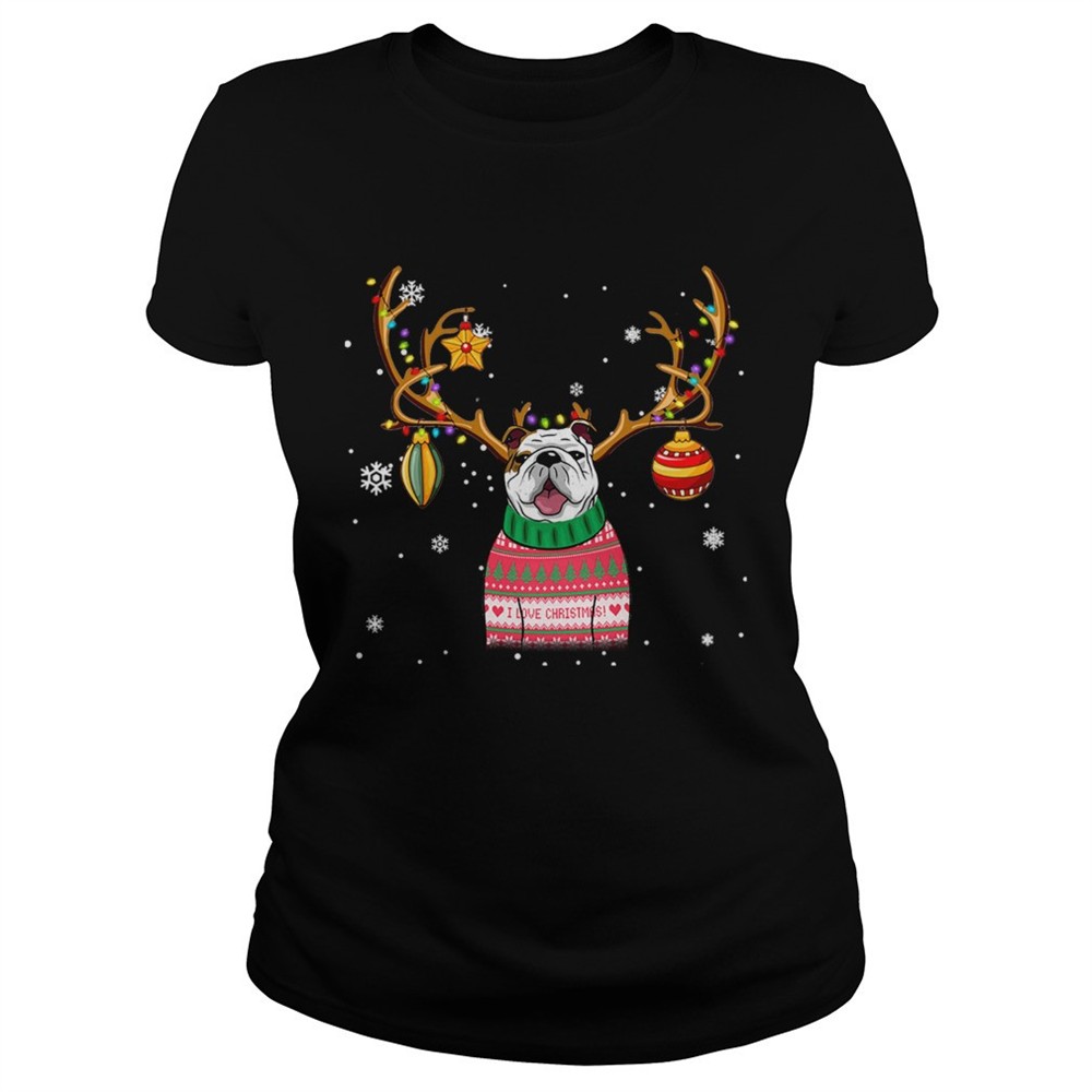 Bulldog Reindeer Christmas Holiday Funny TShirt