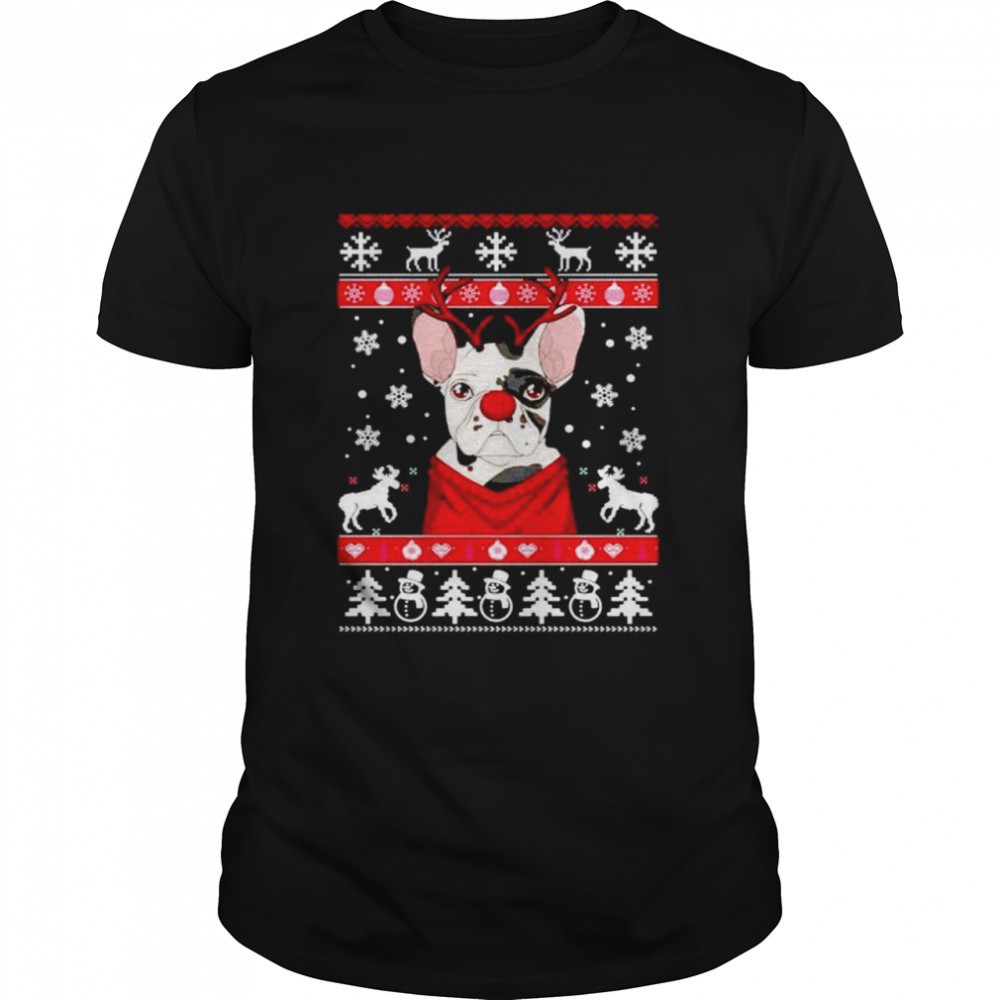 Bulldog Reindeer with Antlers Christmas ugly shirt
