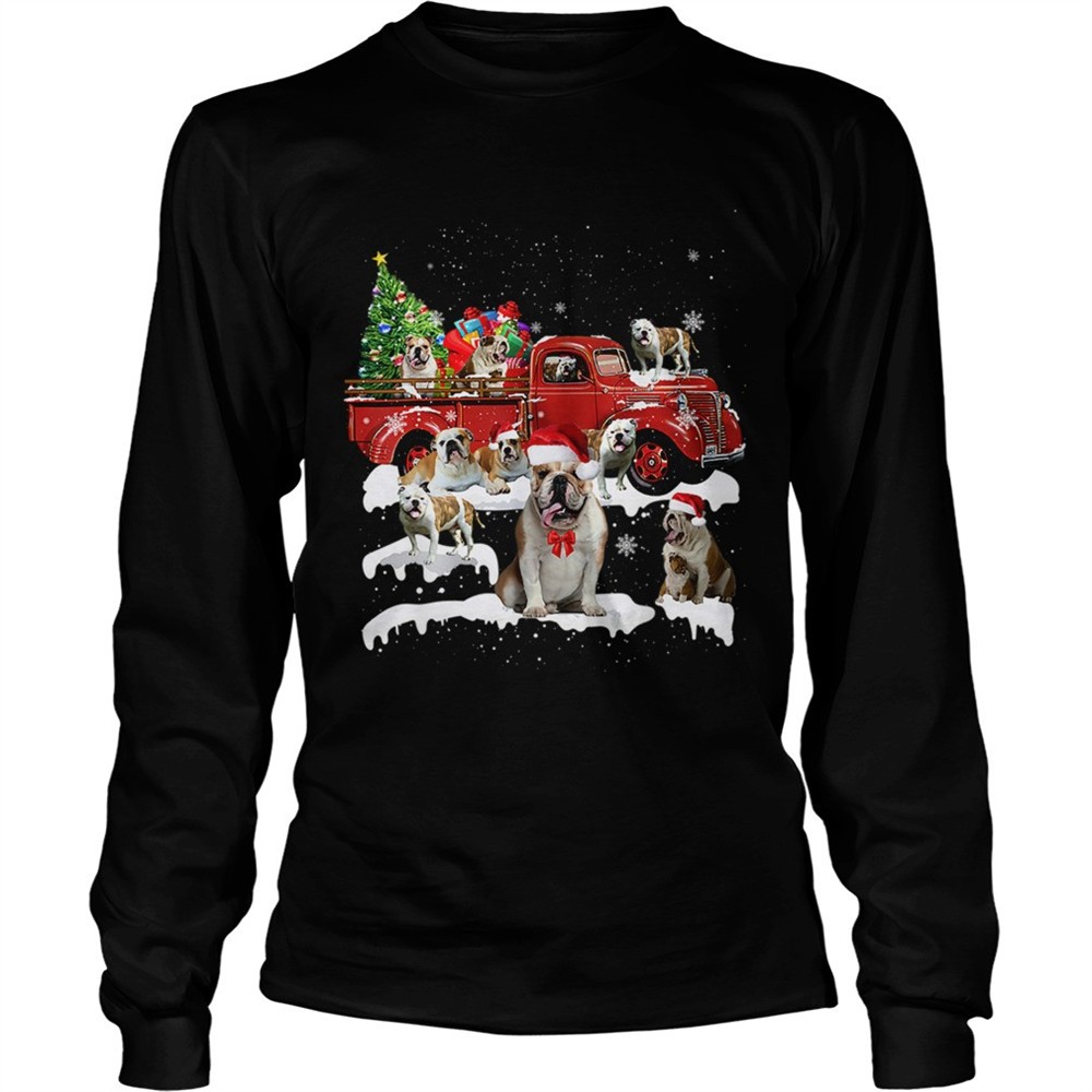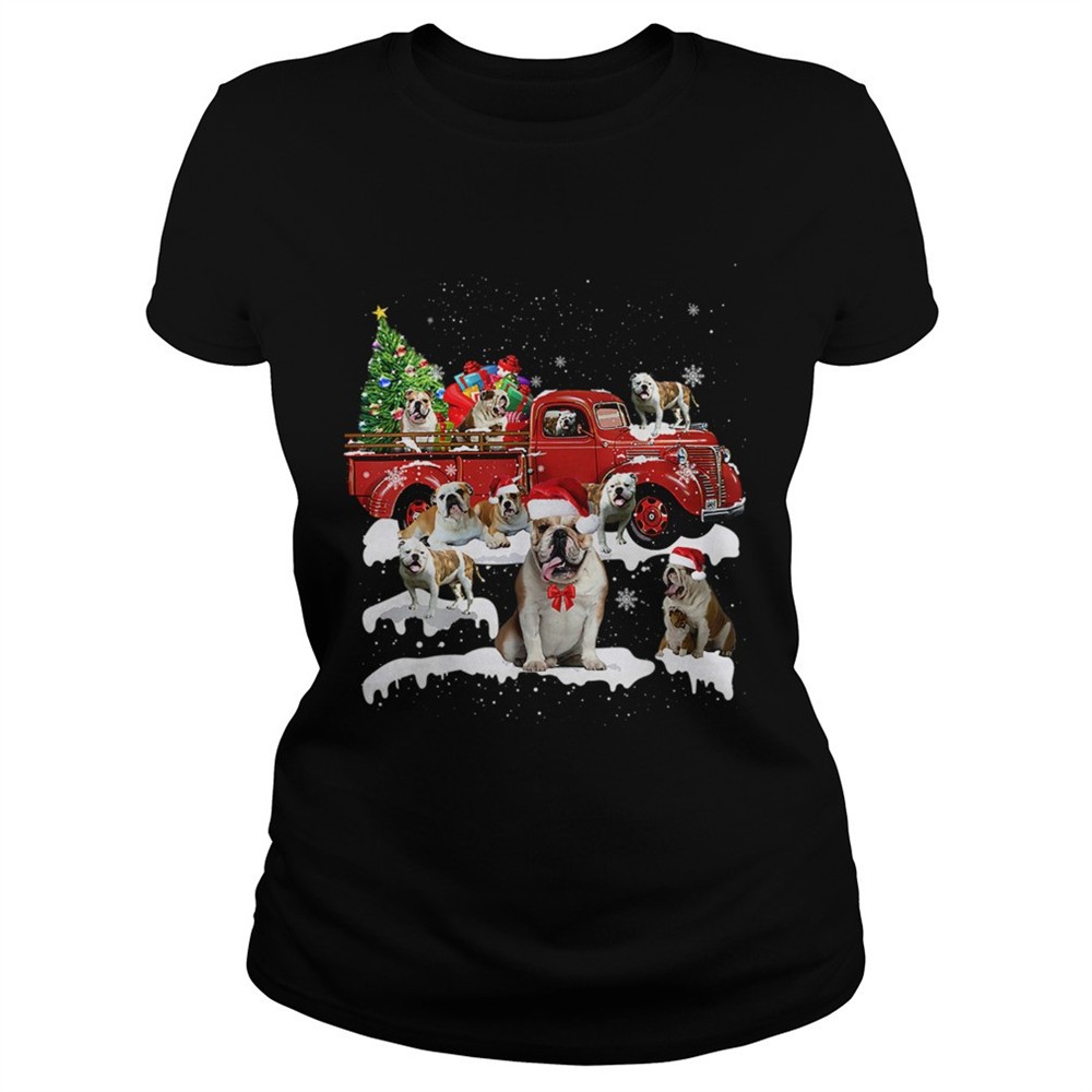 Bulldog Riding Red Truck Xmas Merry Christmas shirt