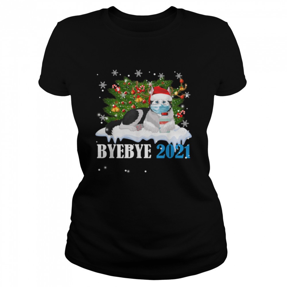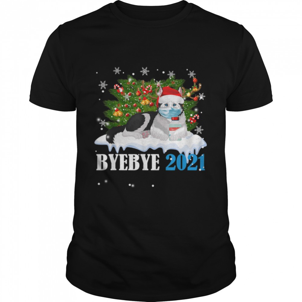 Bye Bye 2025 Alaska Malamute Wear Mask Christmas Tree T-Shirt B09JZZMZ3Y