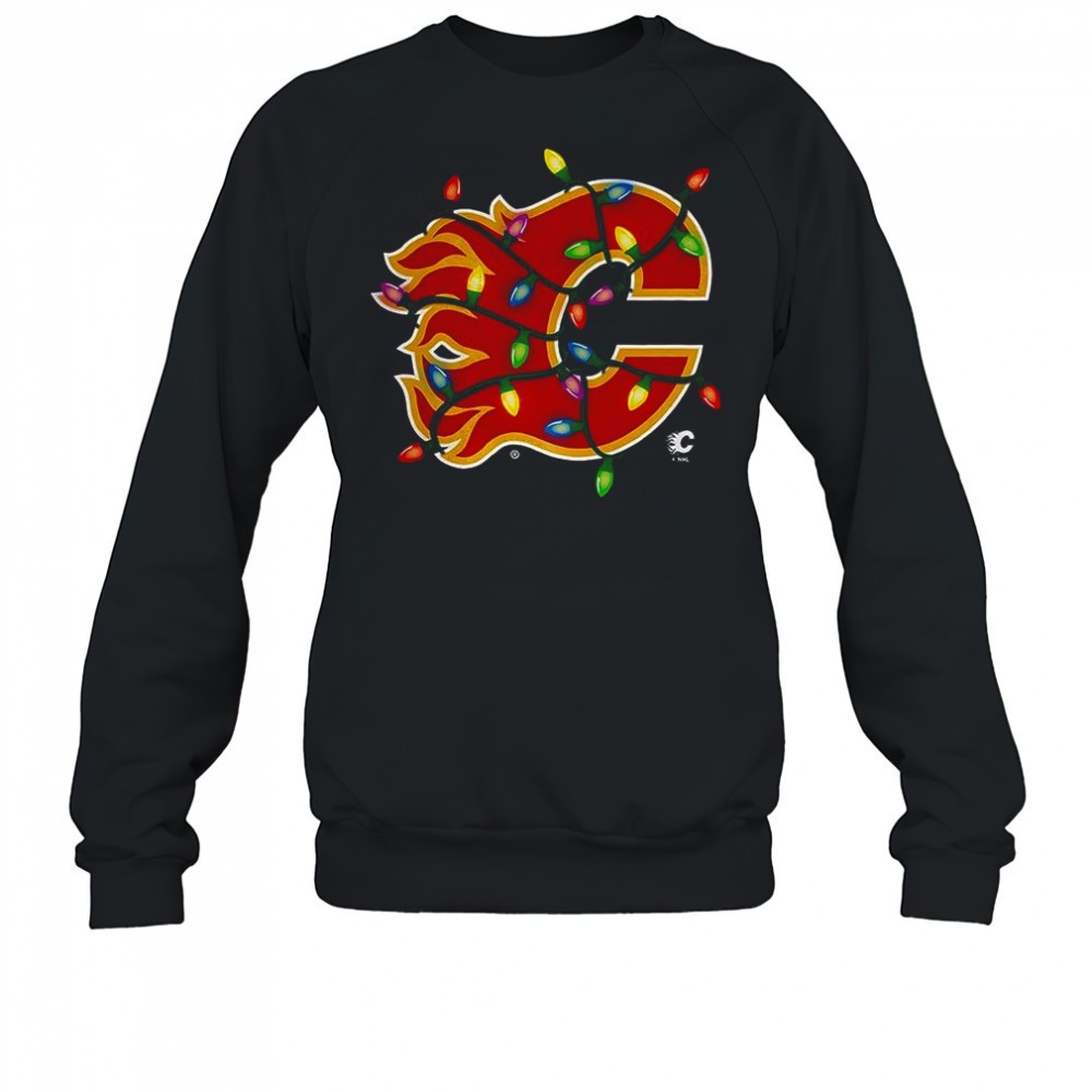 Calgary Flames logo Holiday Merry Christmas lights shirt
