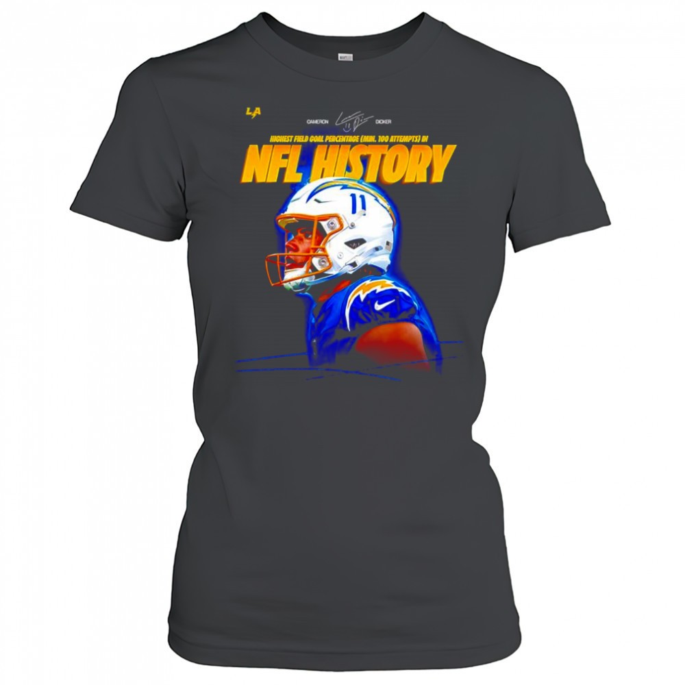 Cameron Dicker Los Angeles Chargers highest field goal percentage in NFL history signature shirt
