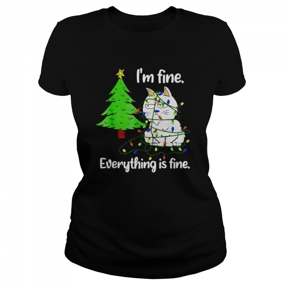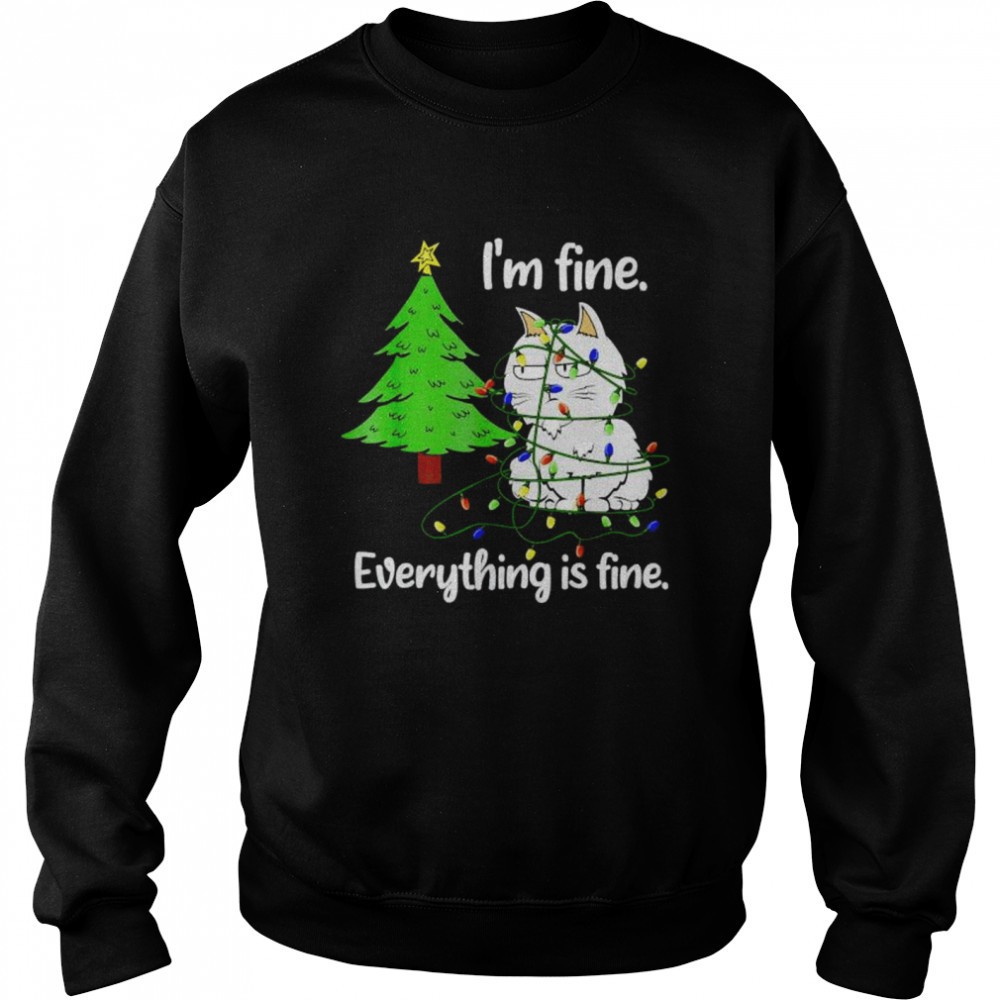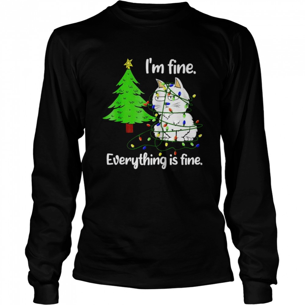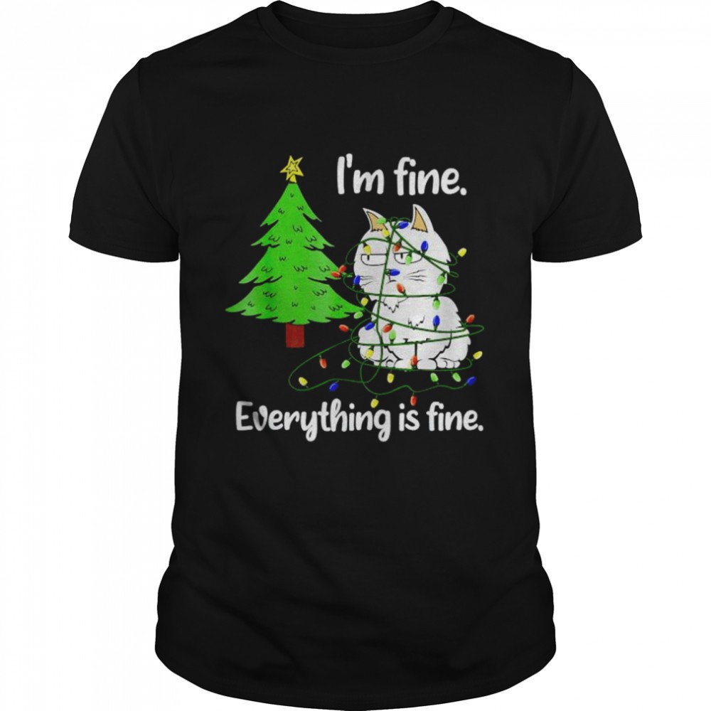 Cat Christmas light Im fine everything is fine shirt