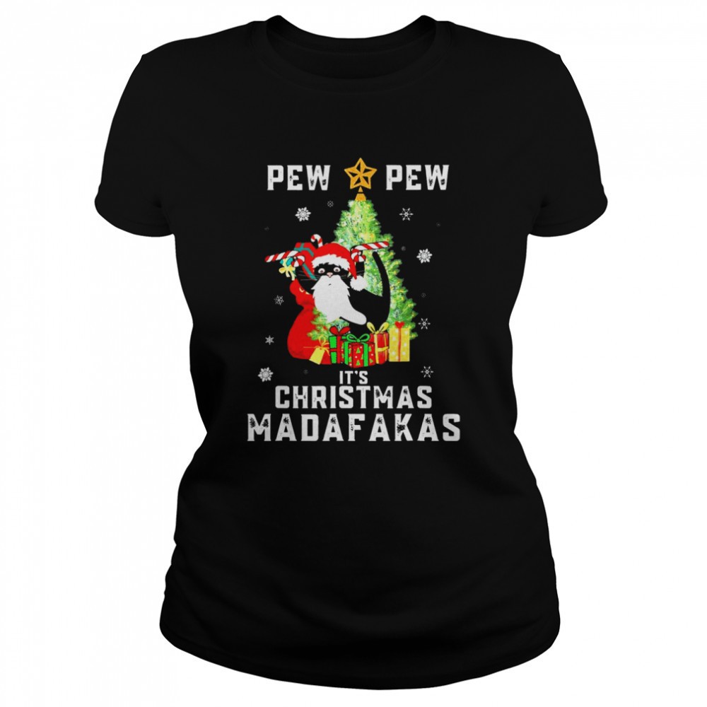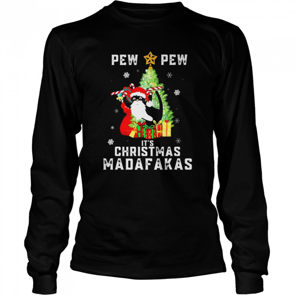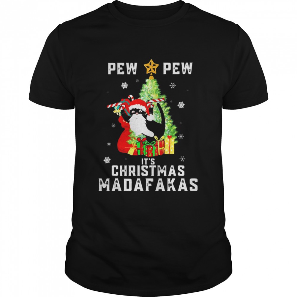 Cat Pew Pew Its Christmas Madafakas Tree 2025 T-Shirt
