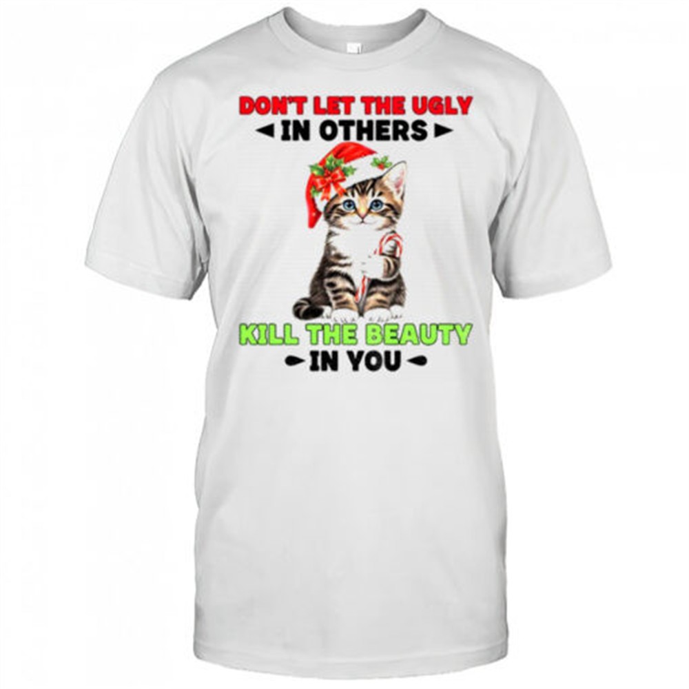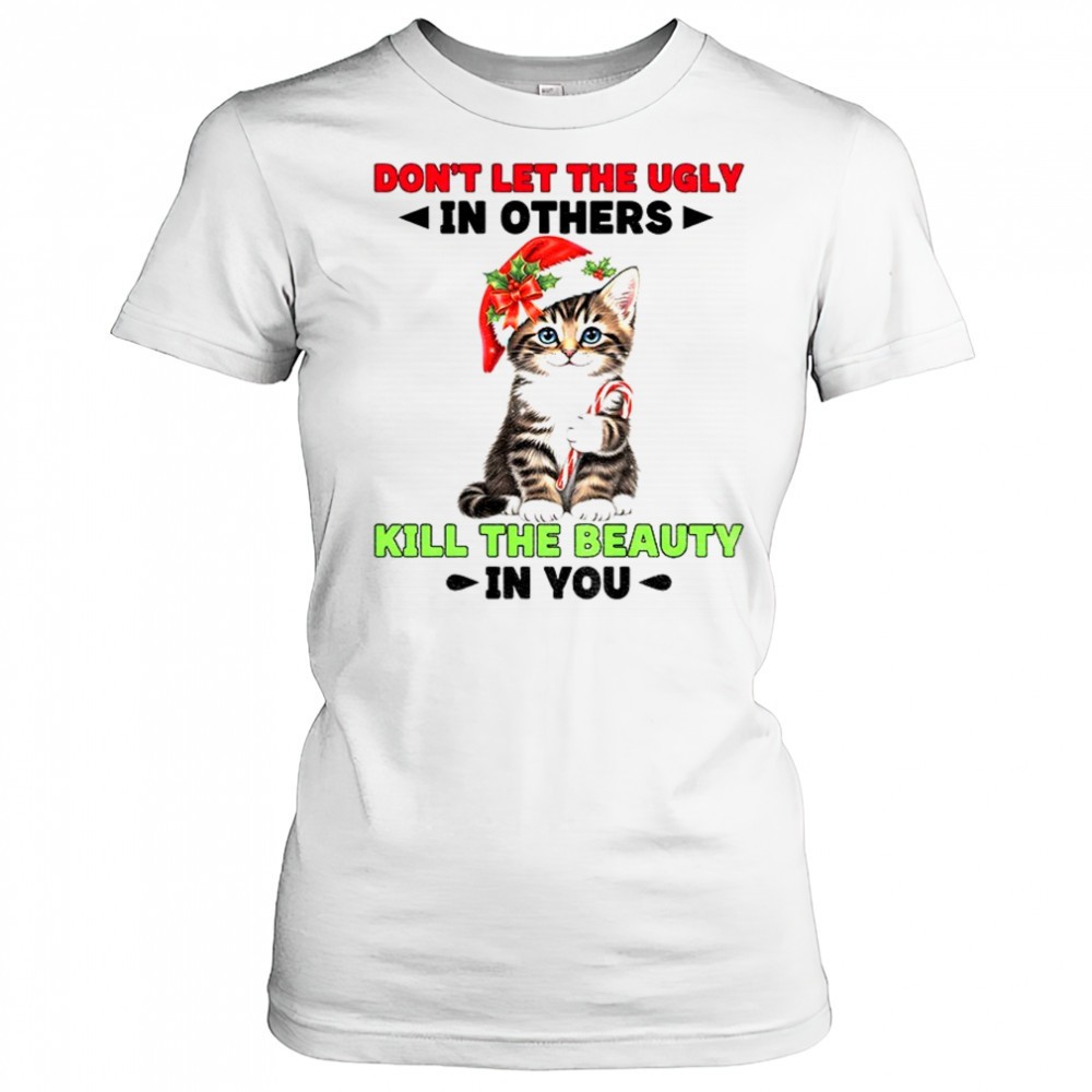 Cat Santa hat dont let the ugly in others kill the beauty in you Christmas shirt