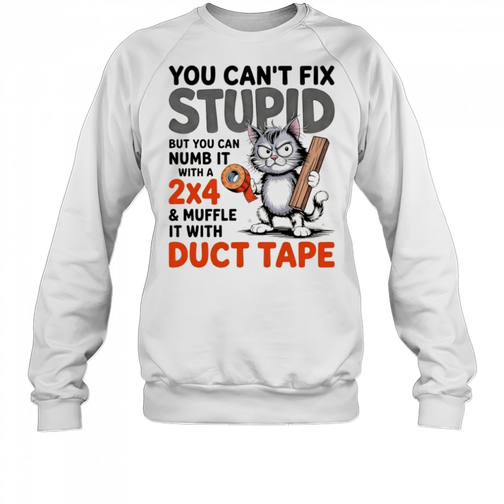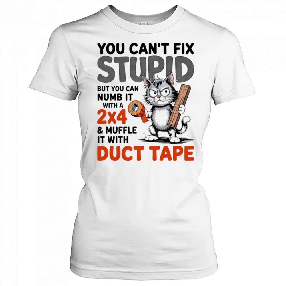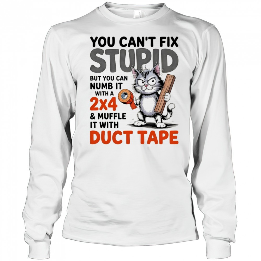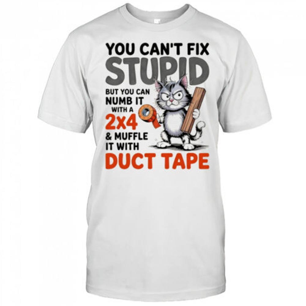 Cat you cant fix stupid but you can numb it with a 2×4 and muffle it with duct tape shirt