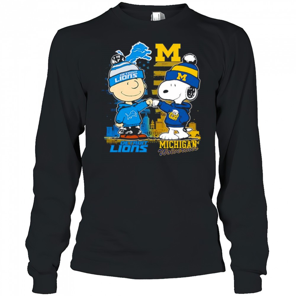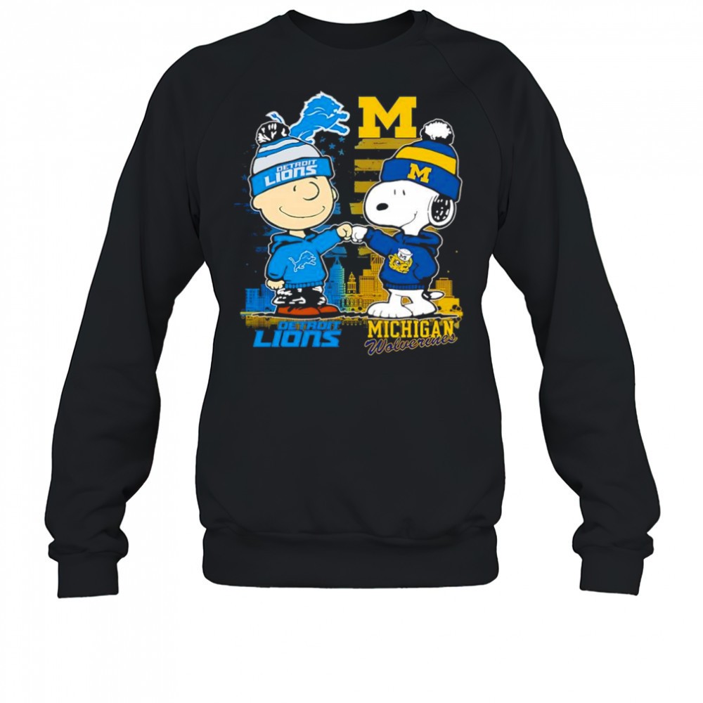 Charlie Brown and Snoopy x Detroit Lions Michigan Wolverines logo shirt