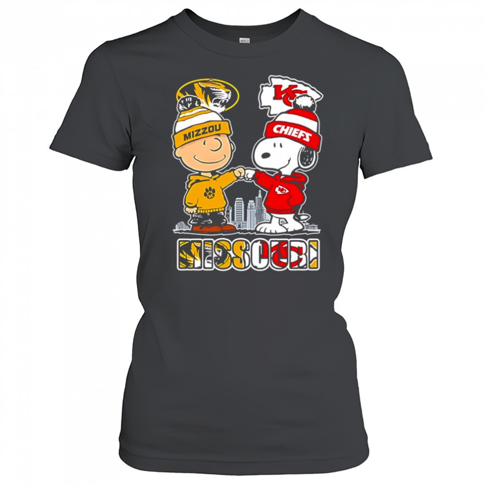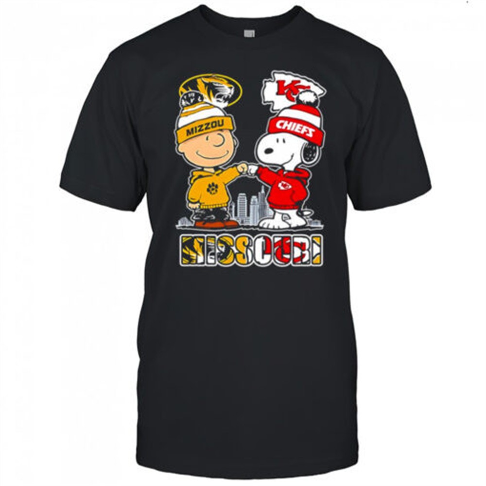 Charlie Brown and Snoopy x Missouri Tigers and Kansas City Chiefs shirt