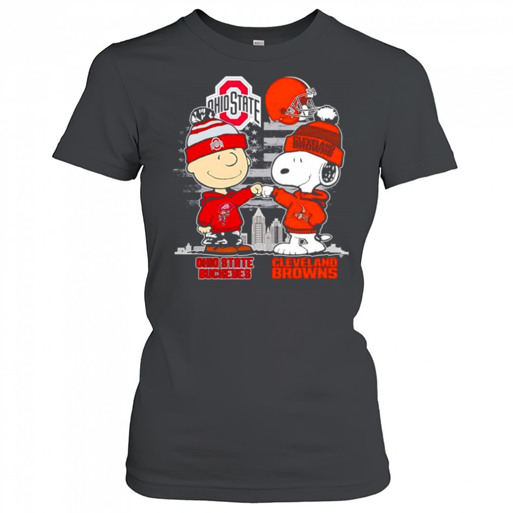 Charlie Brown and Snoopy x Ohio State Buckeyes Cleveland Browns logo shirt