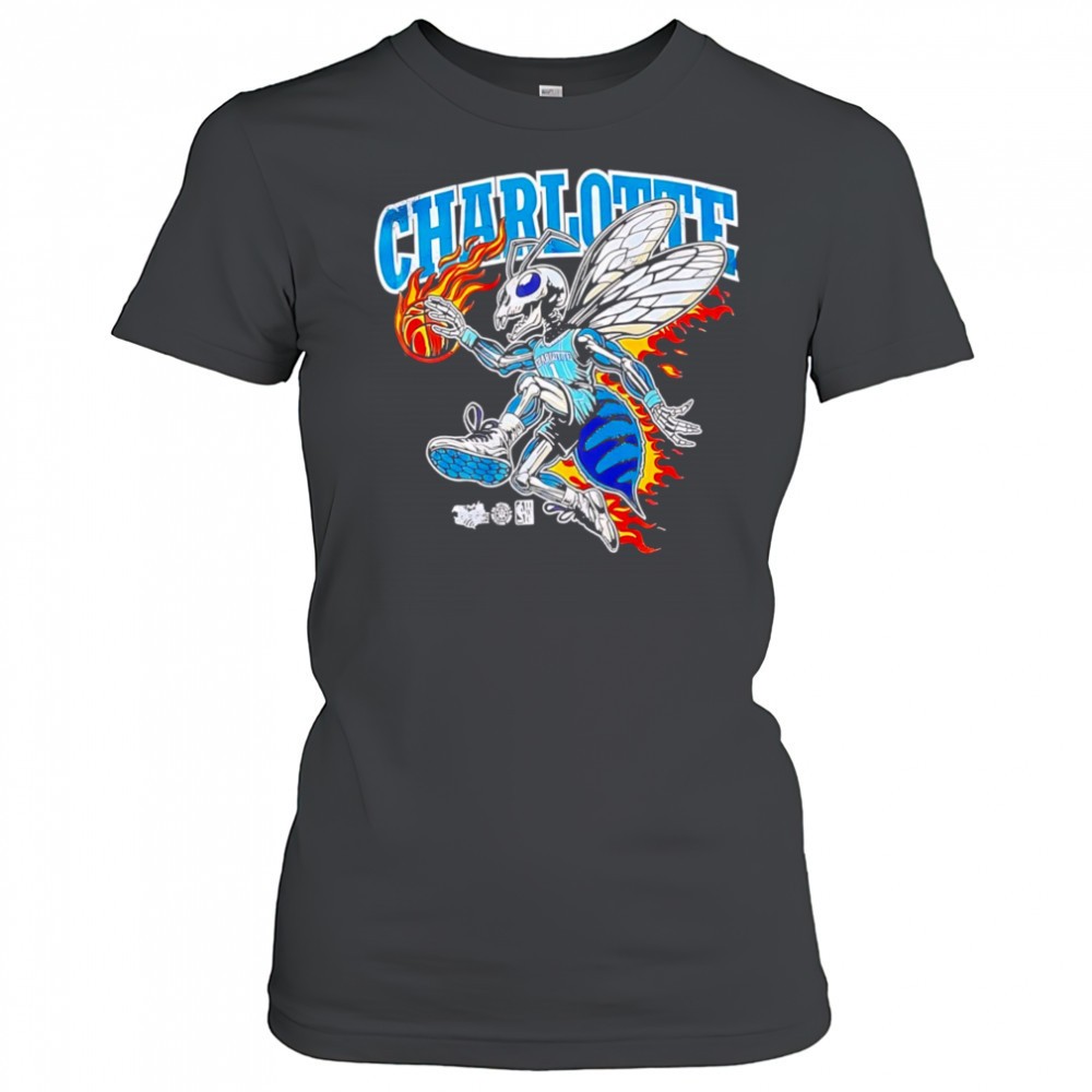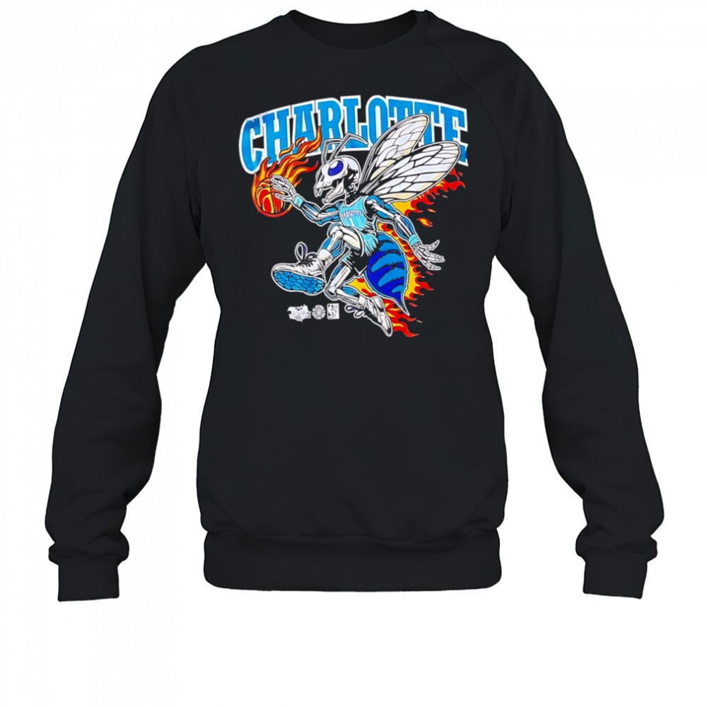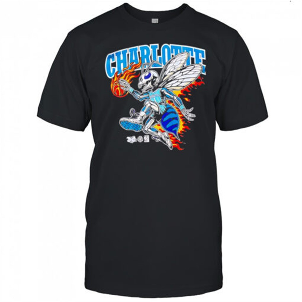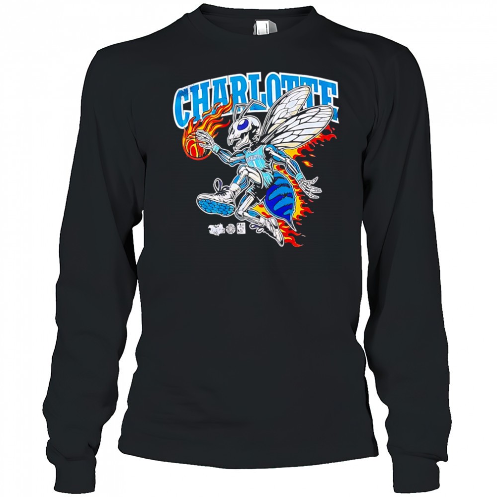 Charlotte Hornets mascot skeleton burning player NBA shirt