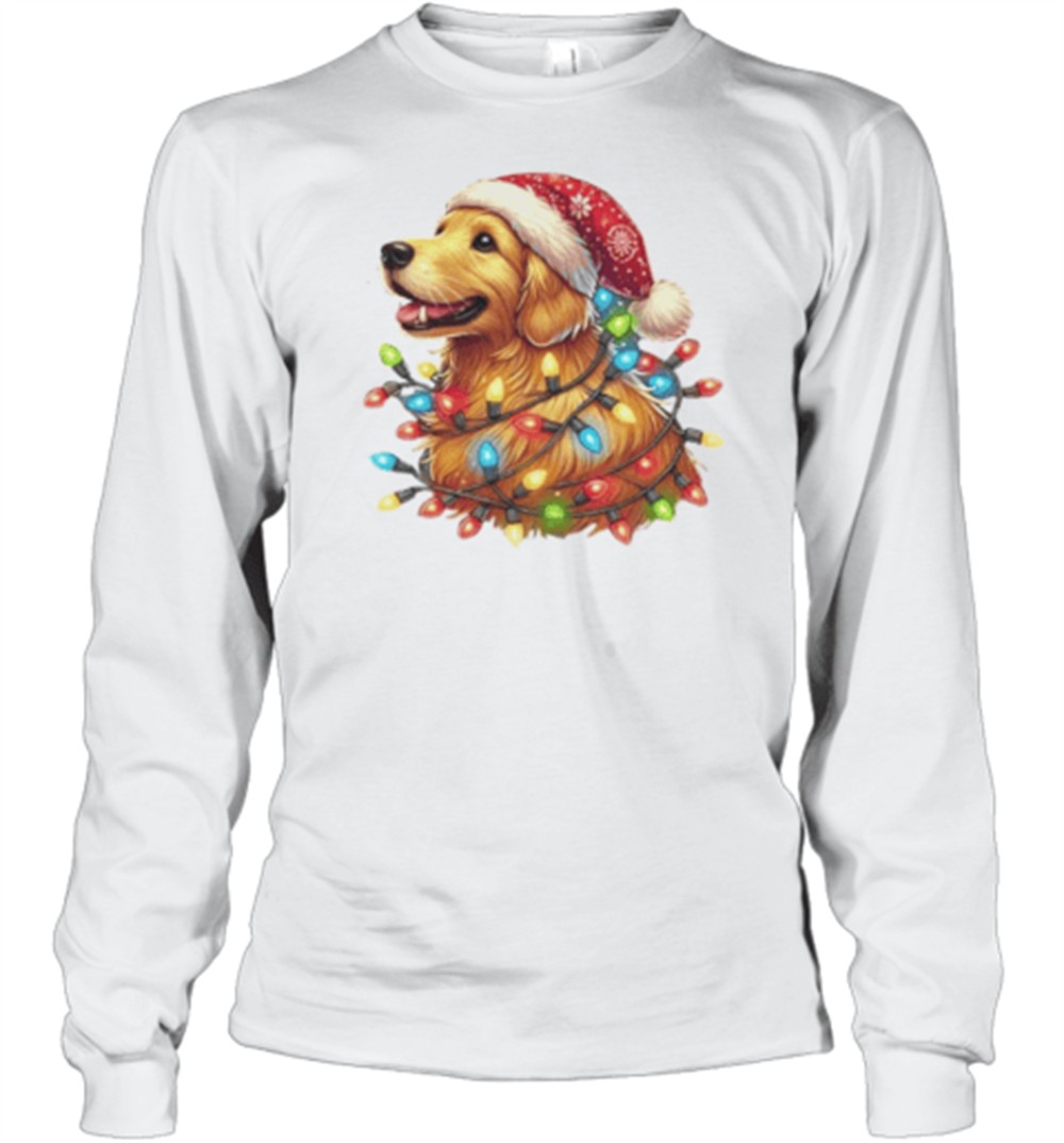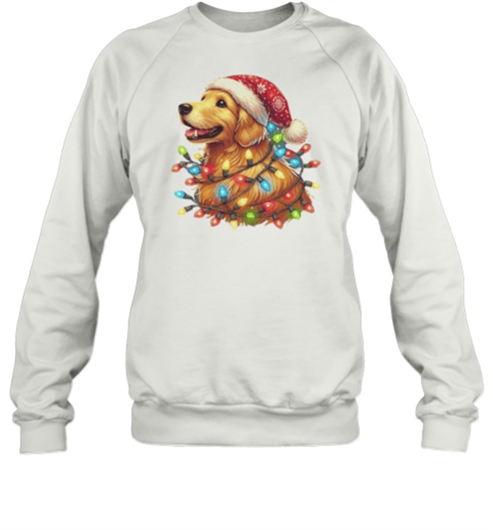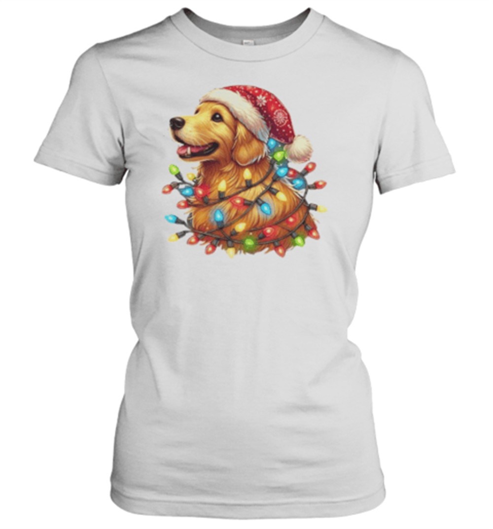 Cheerful Christmas Pup Golden Retriever In Lights T-Shirt