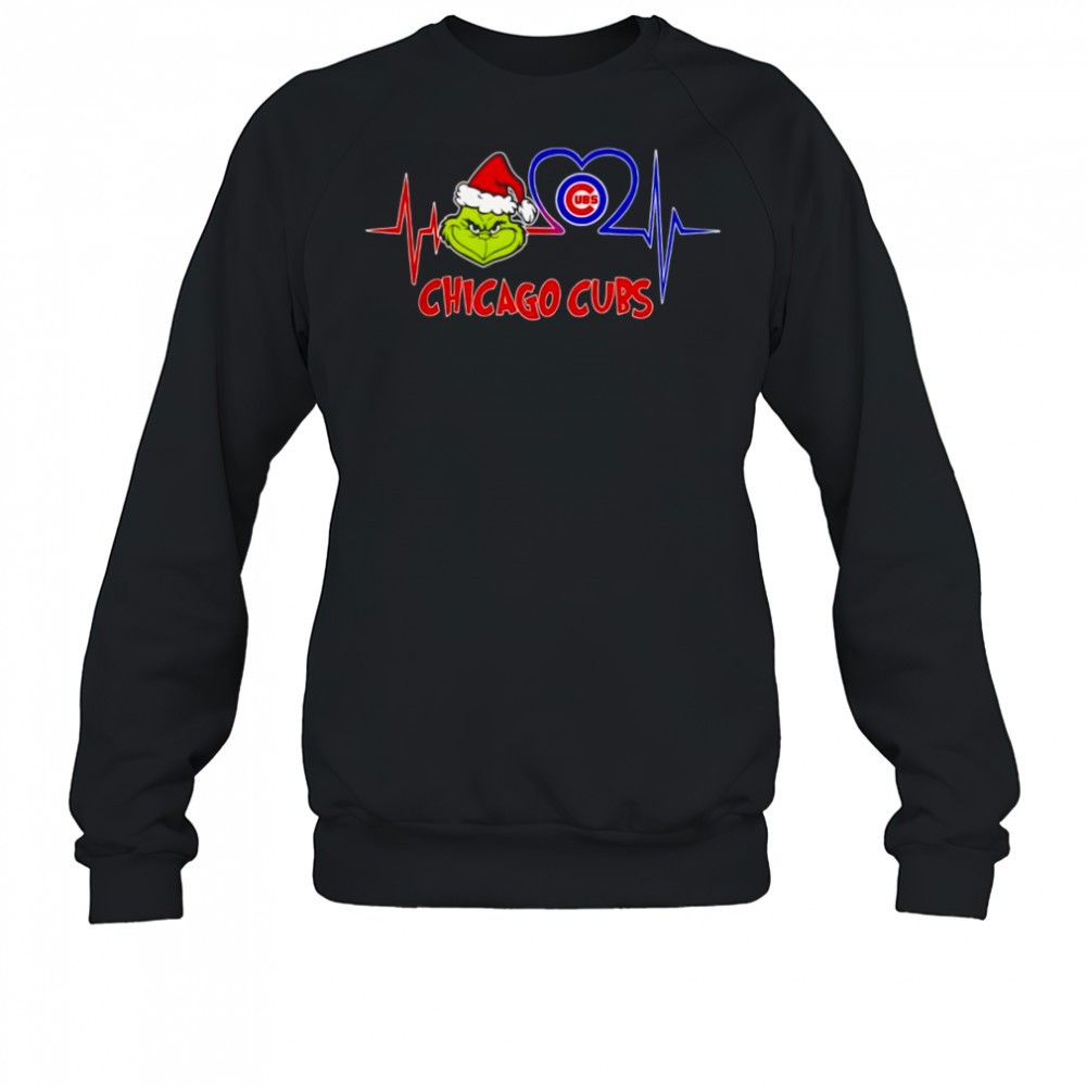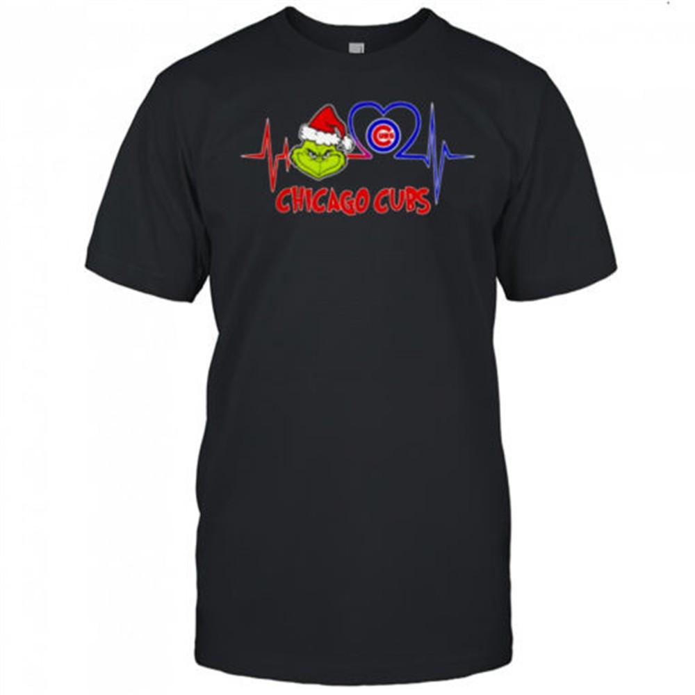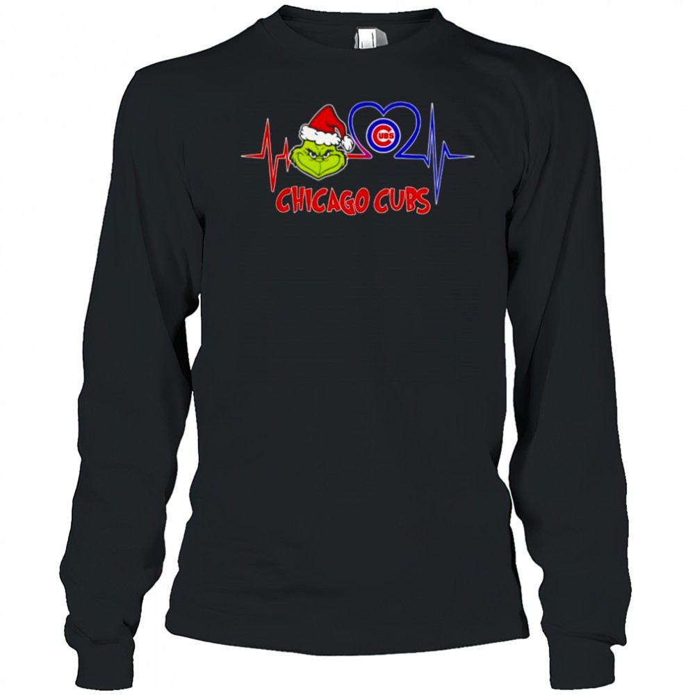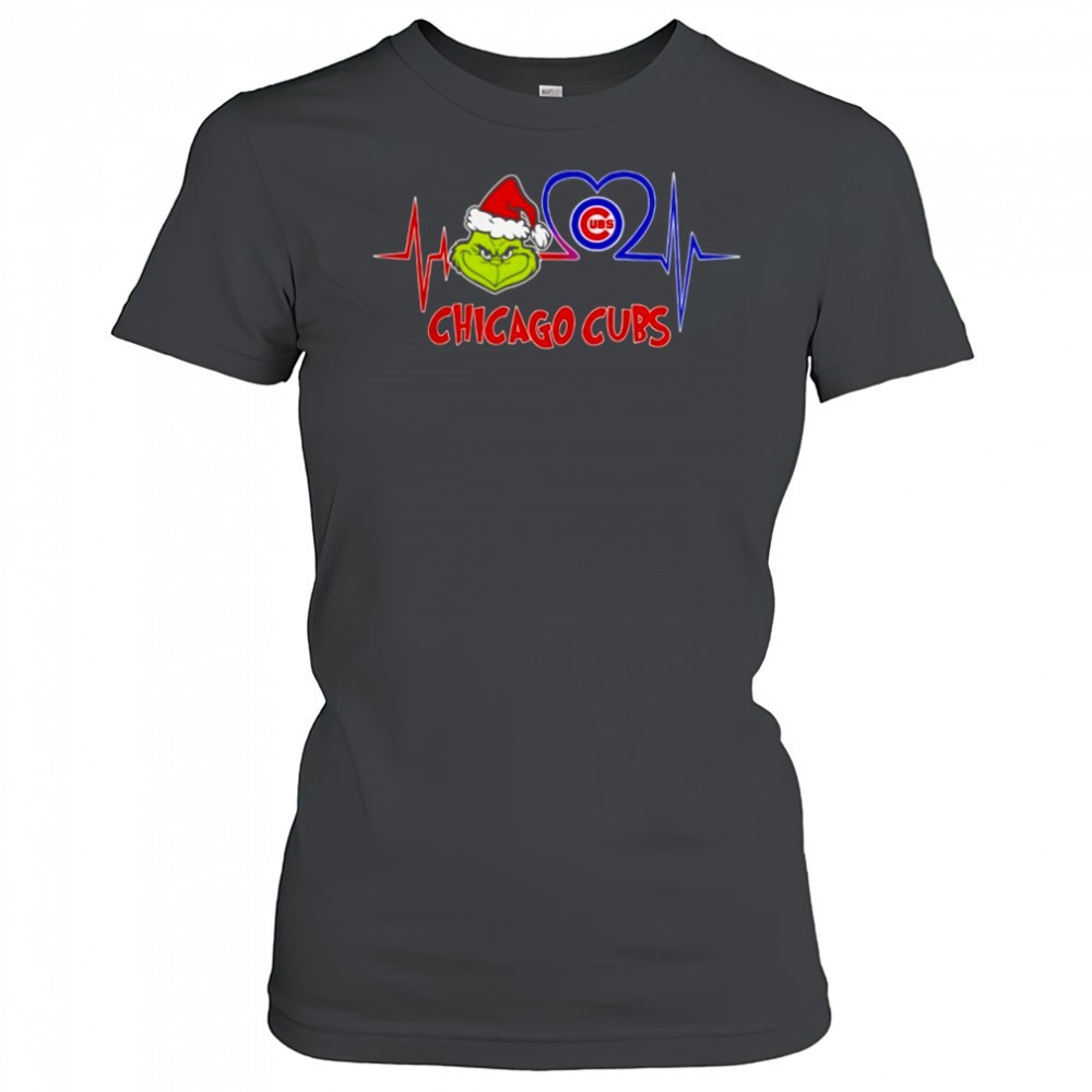 Chicago Cubs x Grinch Santa Heartbeat Love Logo Merry Christmas Shirt