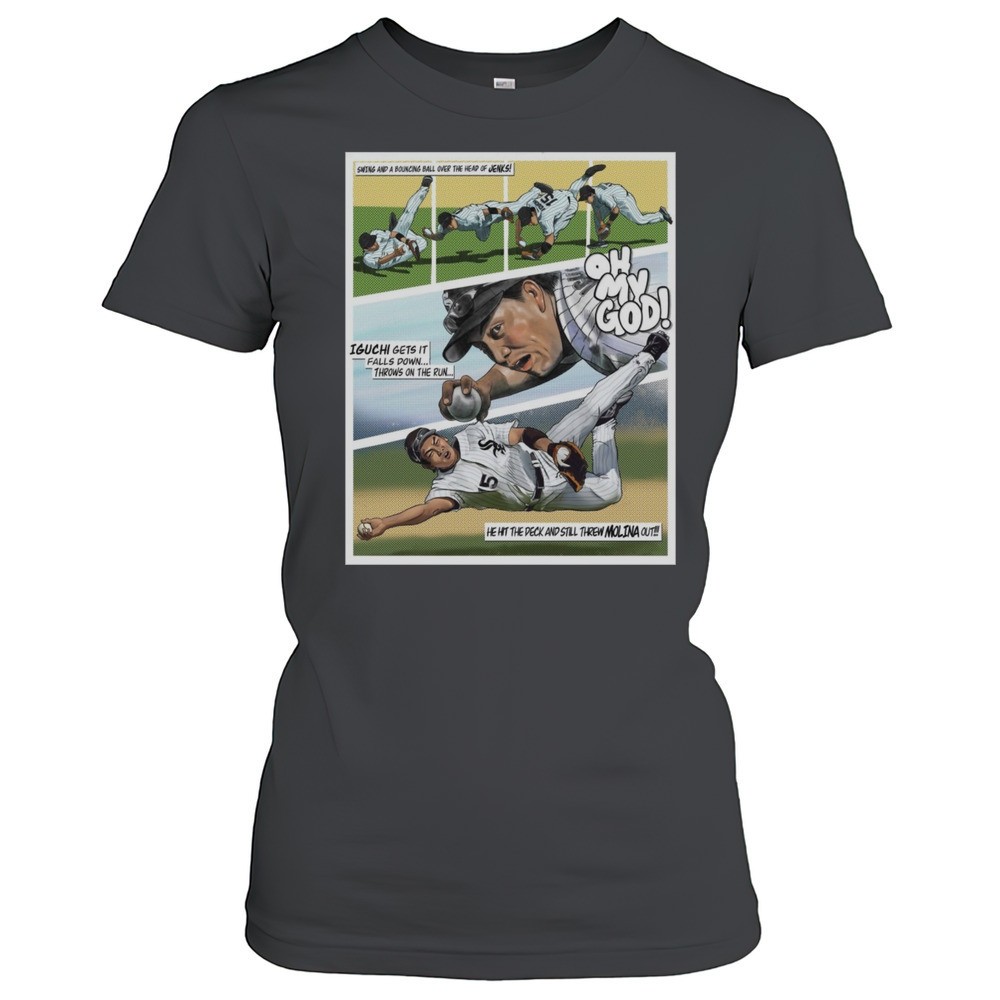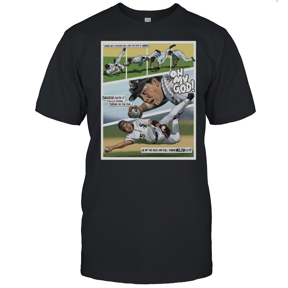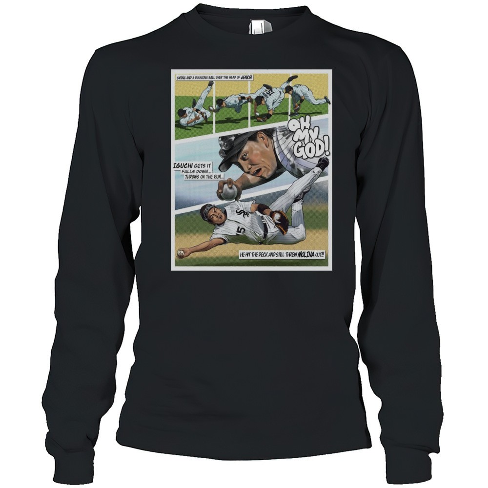 Chicago White Sox Swing And A Bouncing Ball Over The Head Of Jenks Iguchi Gets It Falls Down Poster T-shirt