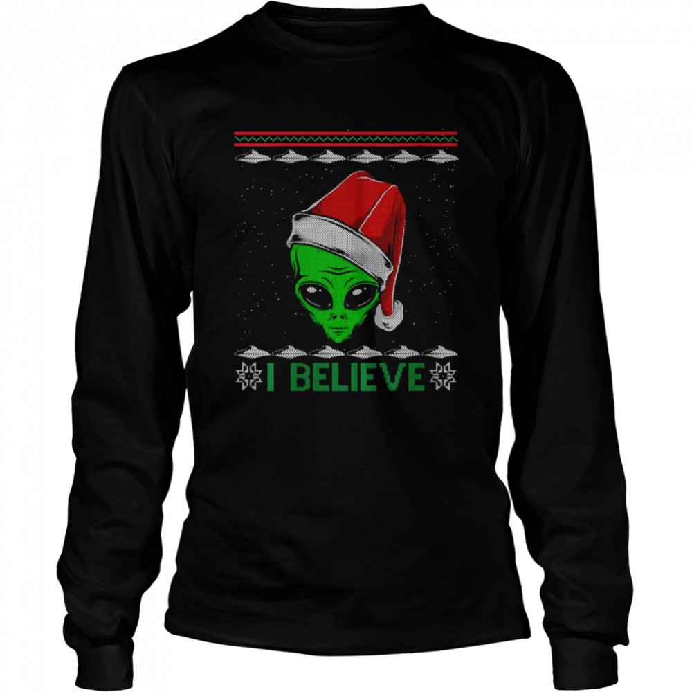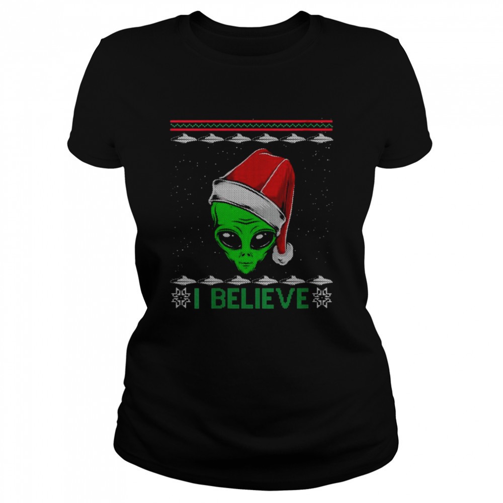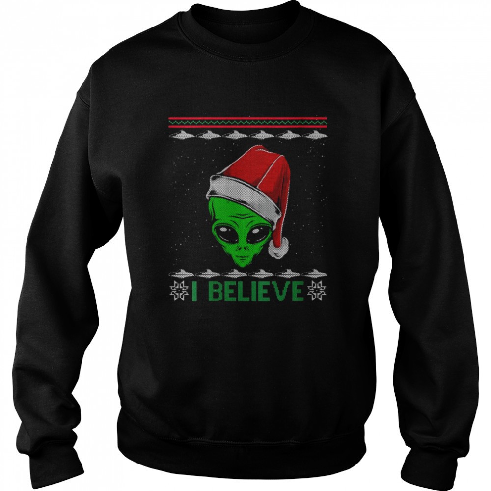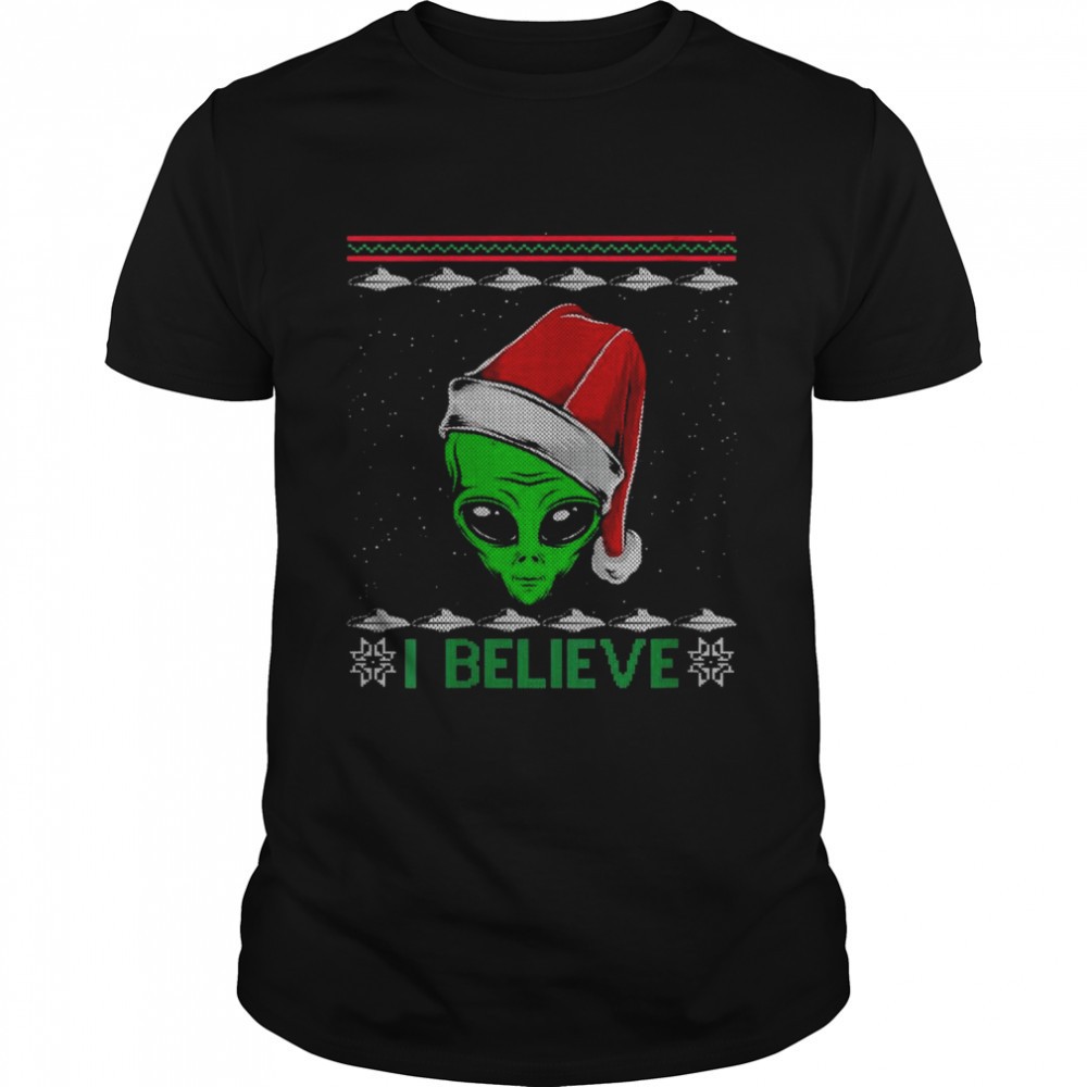 Christmas Alien Santa I Believe Ugly Christmas UFO Shirt