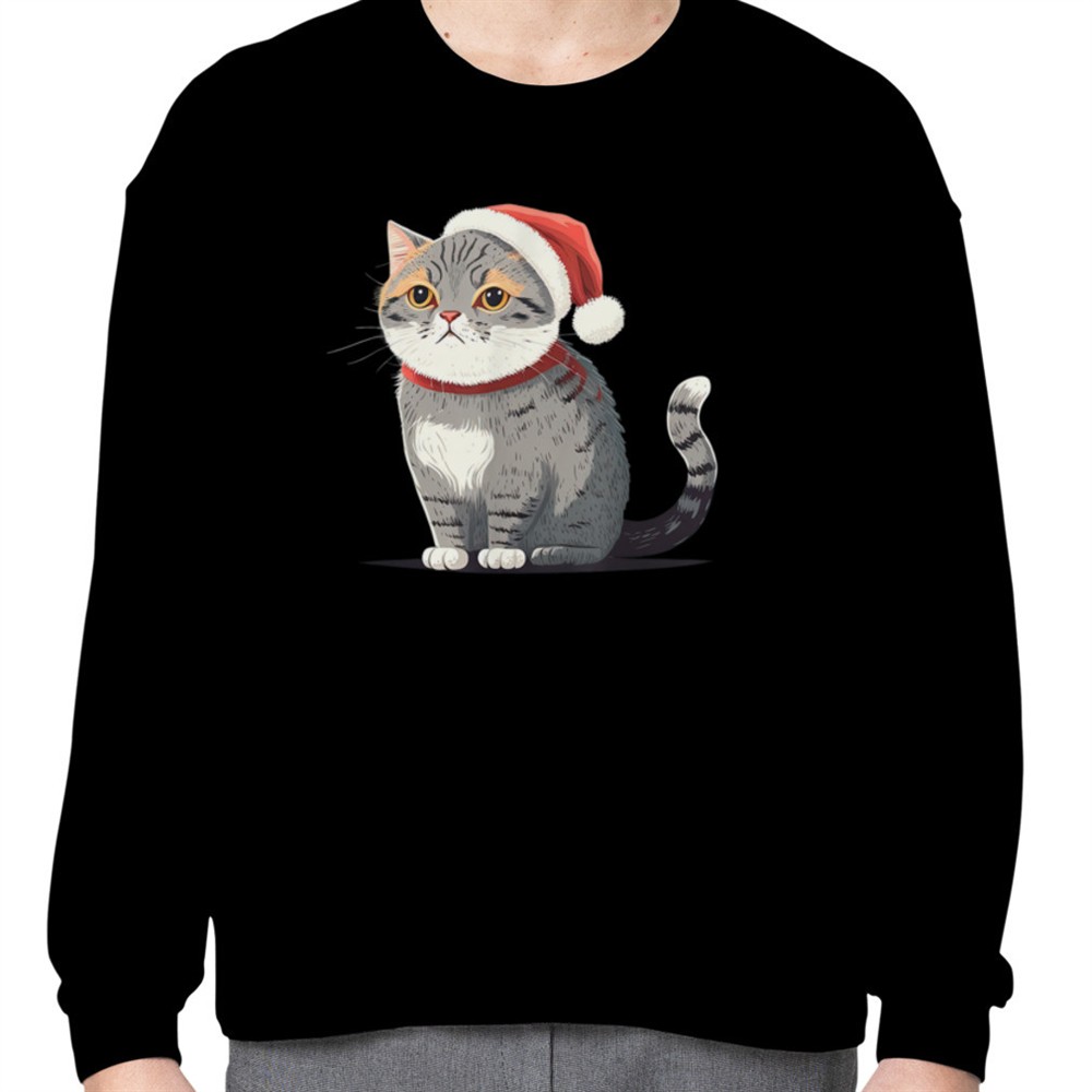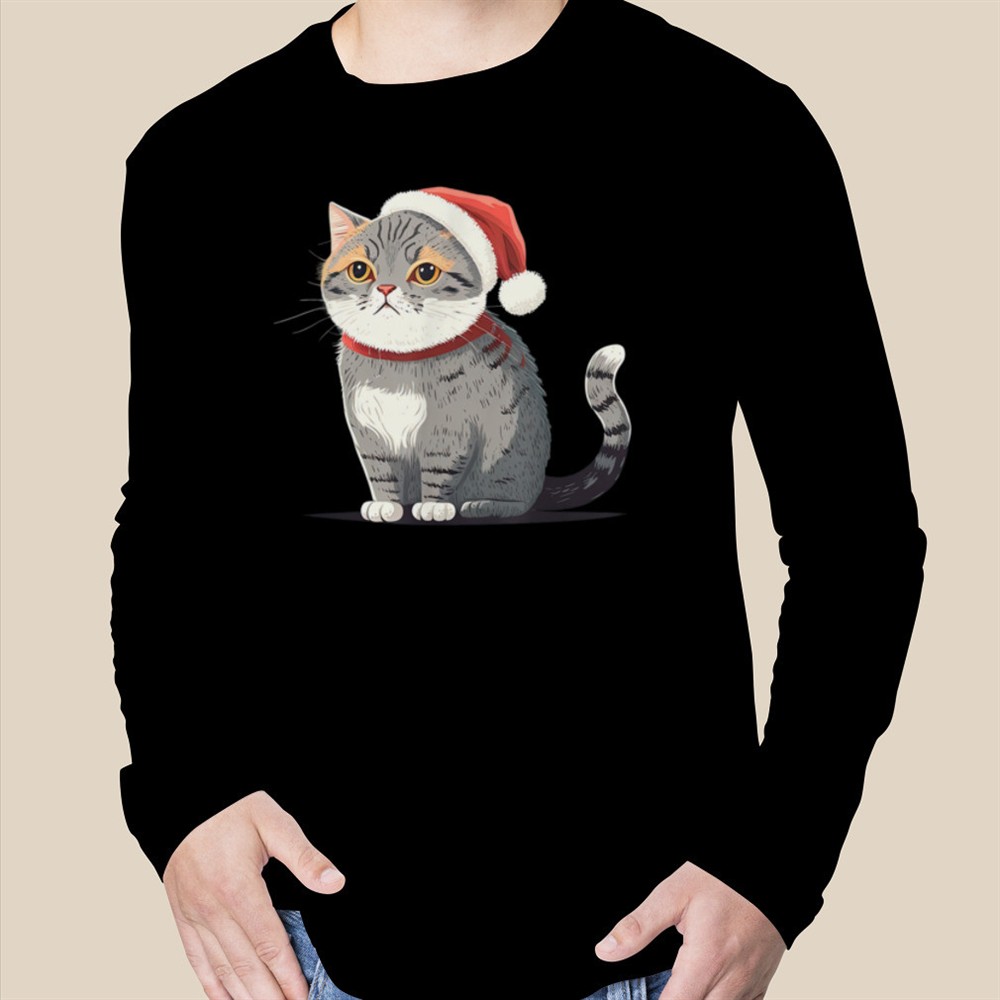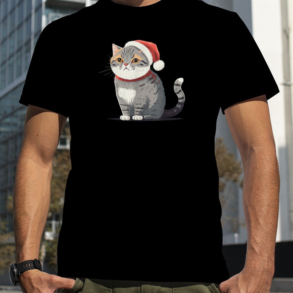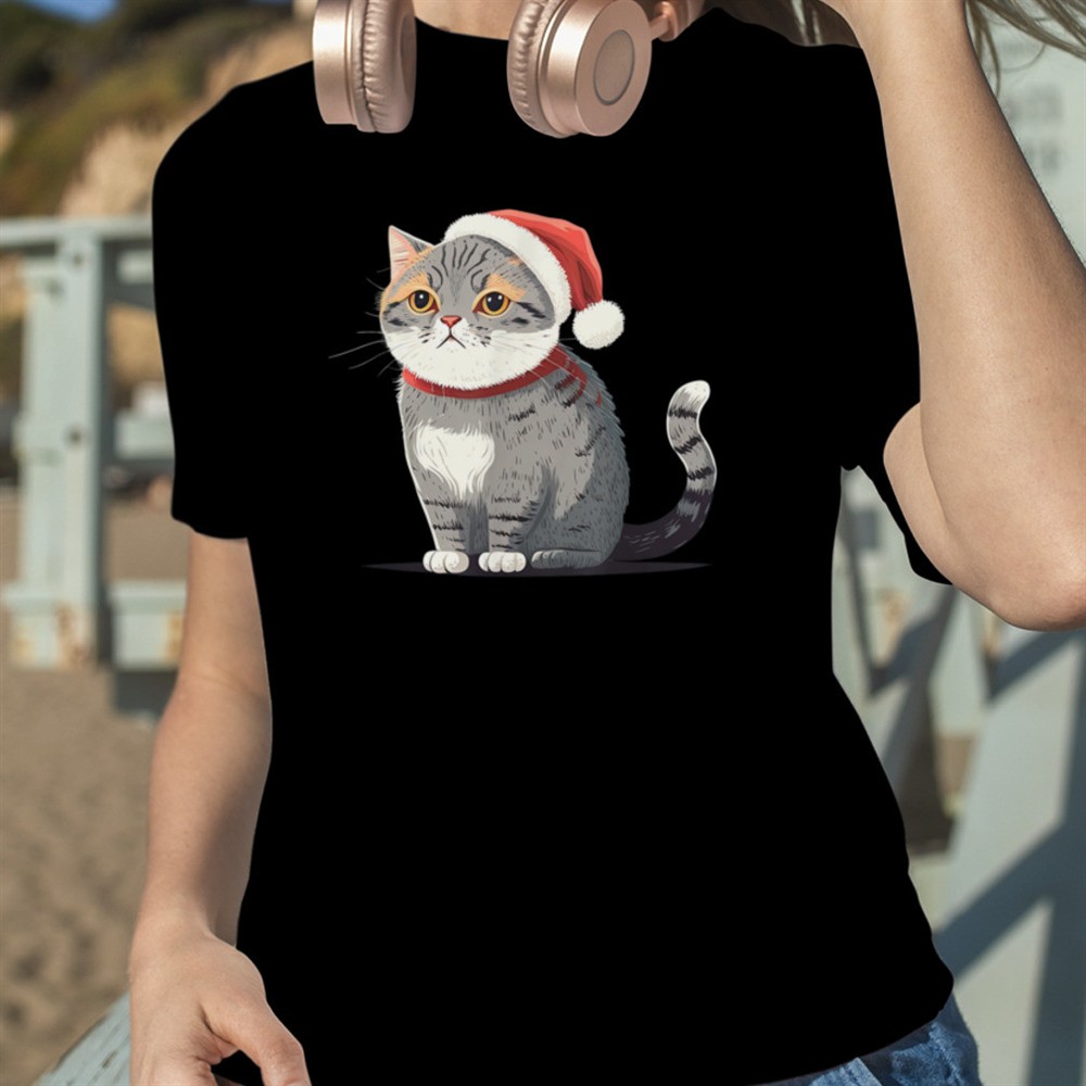 Christmas Cat Cute hat Art Design Illustration T-Shirt B0BNPTX8KB
