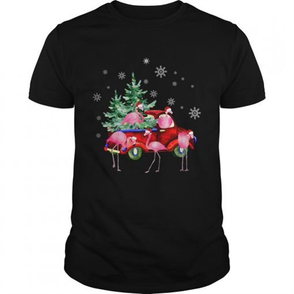 Christmas Flamingo Truck Funny Flamingo Santa Tree Xmas Gift shirt