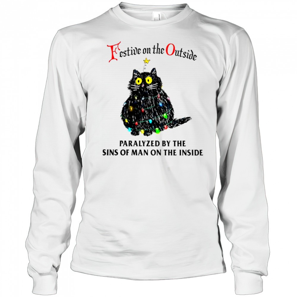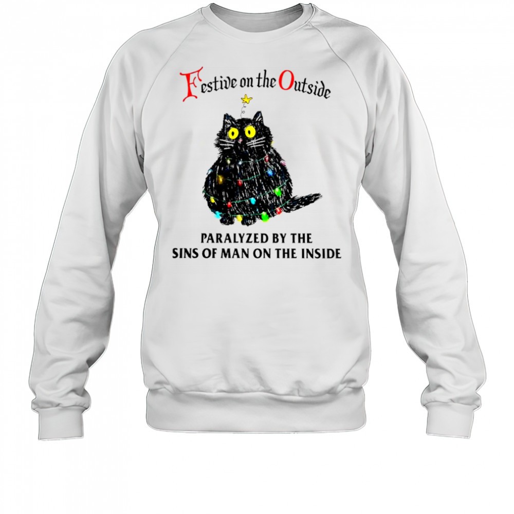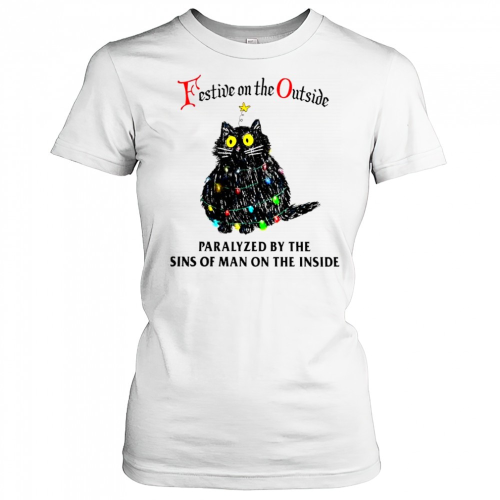 Christmas lights Cat festive on the outside paralyzed by the sins of man on the inside shirt