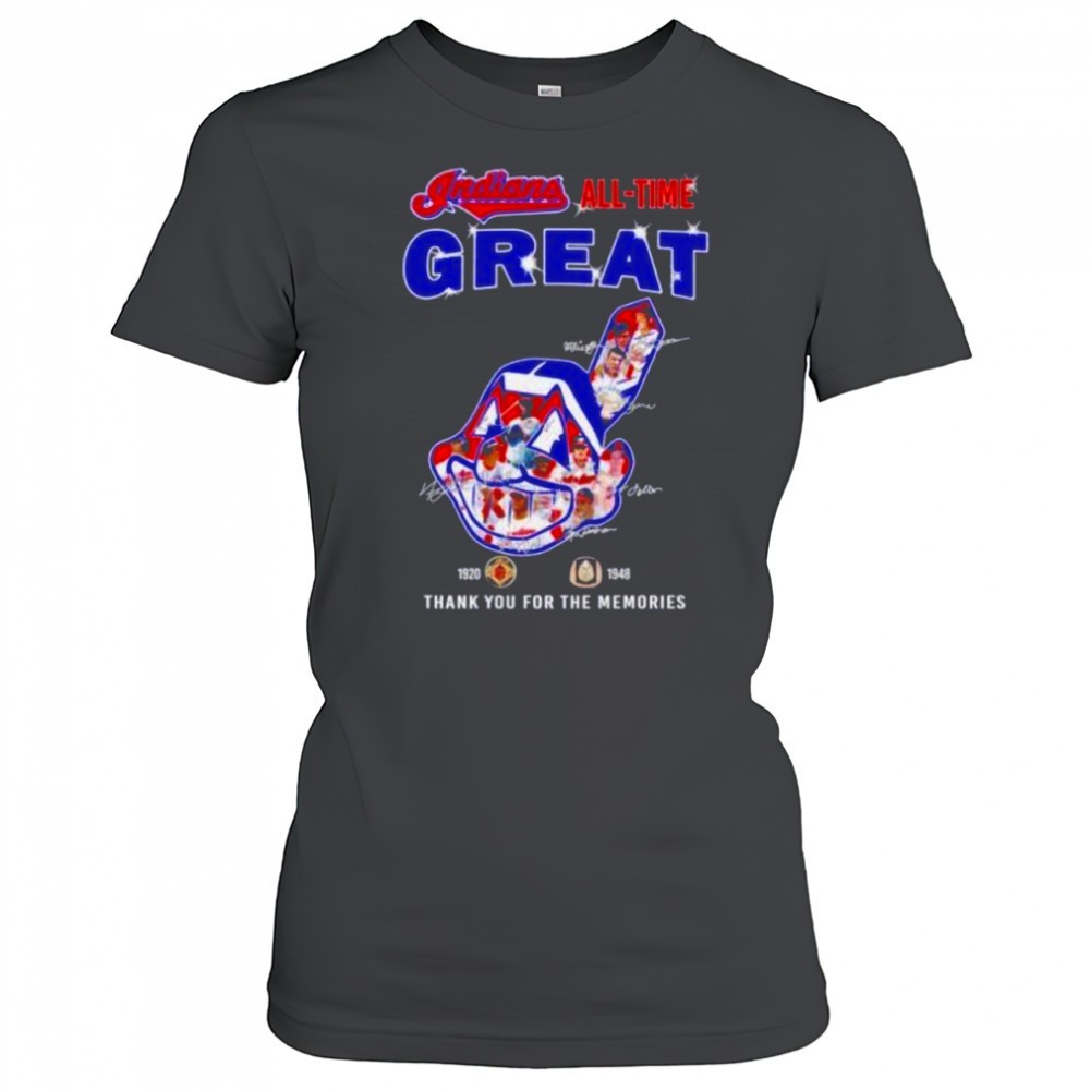 Cleveland Indians all time great 1920 1948 thank you for the memories logo players signature shirt