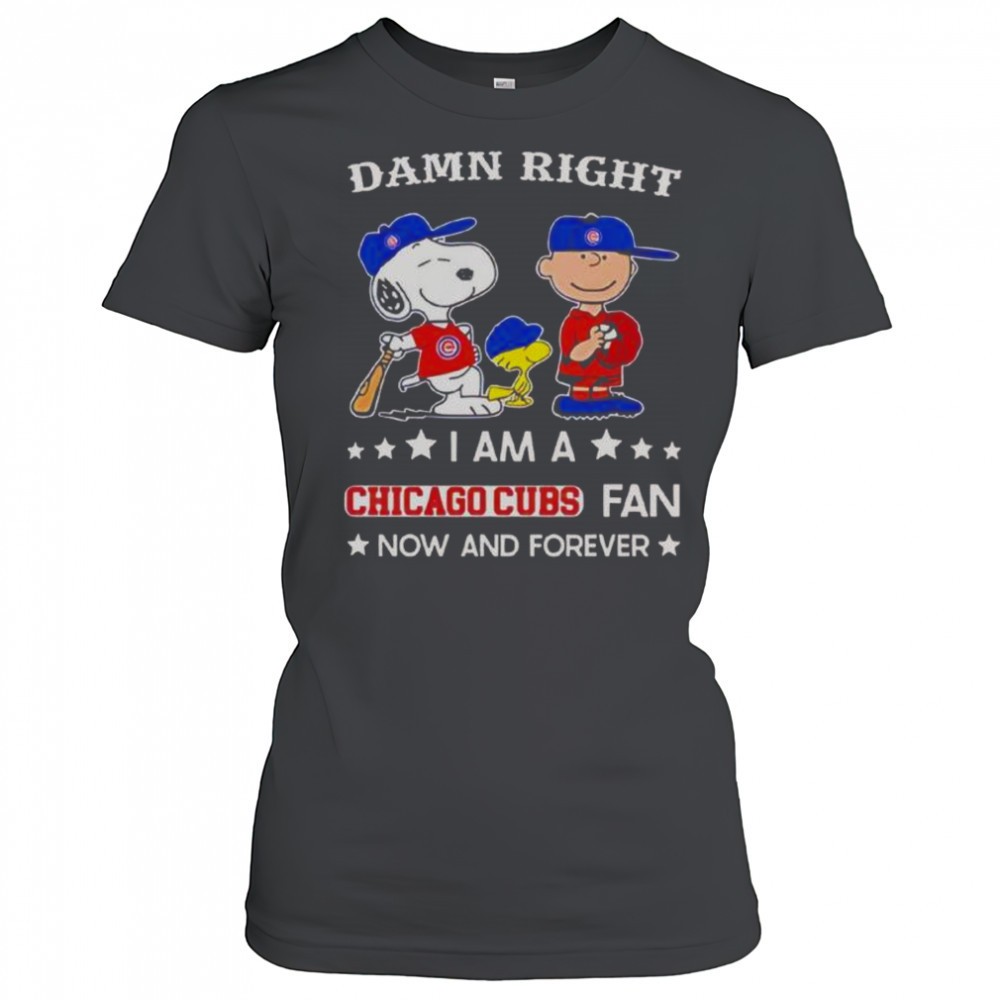 Damn Right I Am A Cubs Fan Now And Forever Snoopy And Charlie Brown T-Shirt