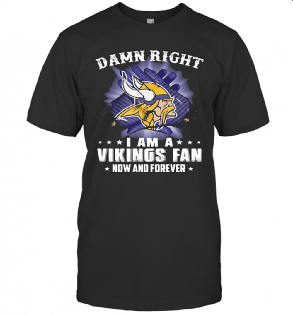 Damn Right I Am A Minnesota Vikings Fan Now And Forever Stars T-Shirt