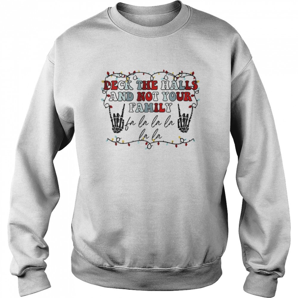 Deck The Halls and Not Your Family Skeleton Christmas Shirt