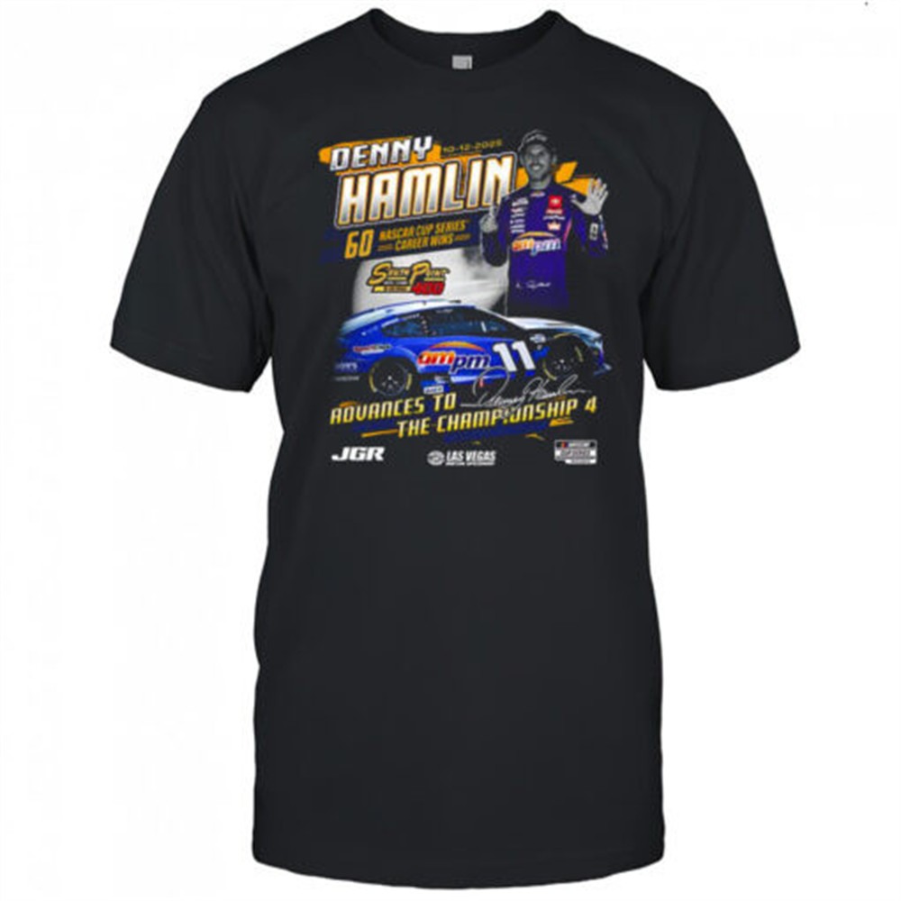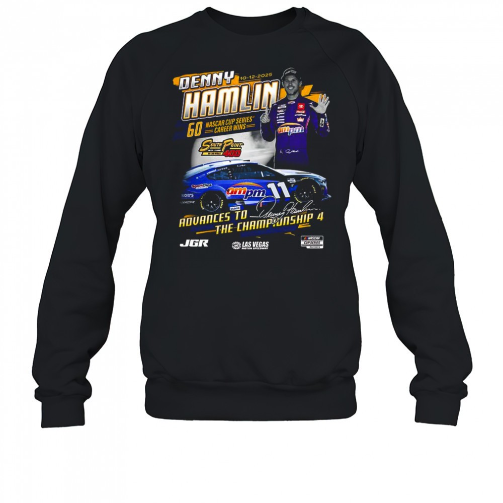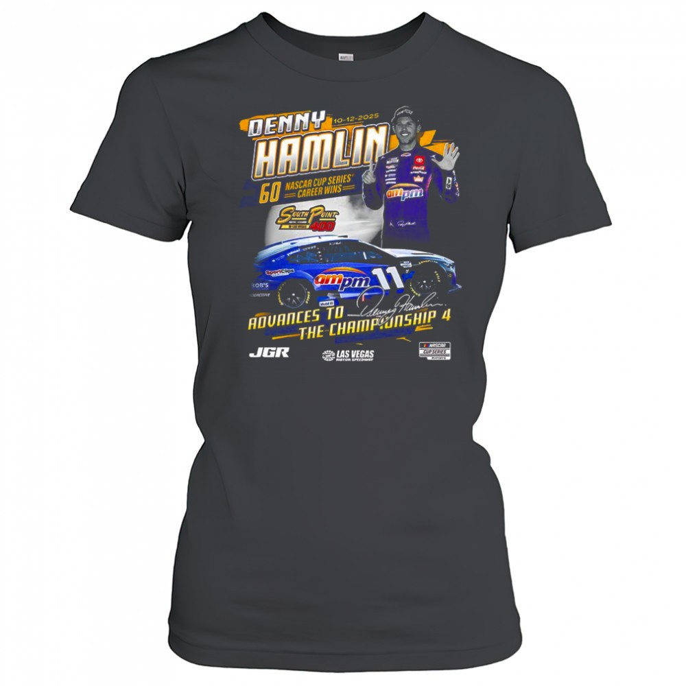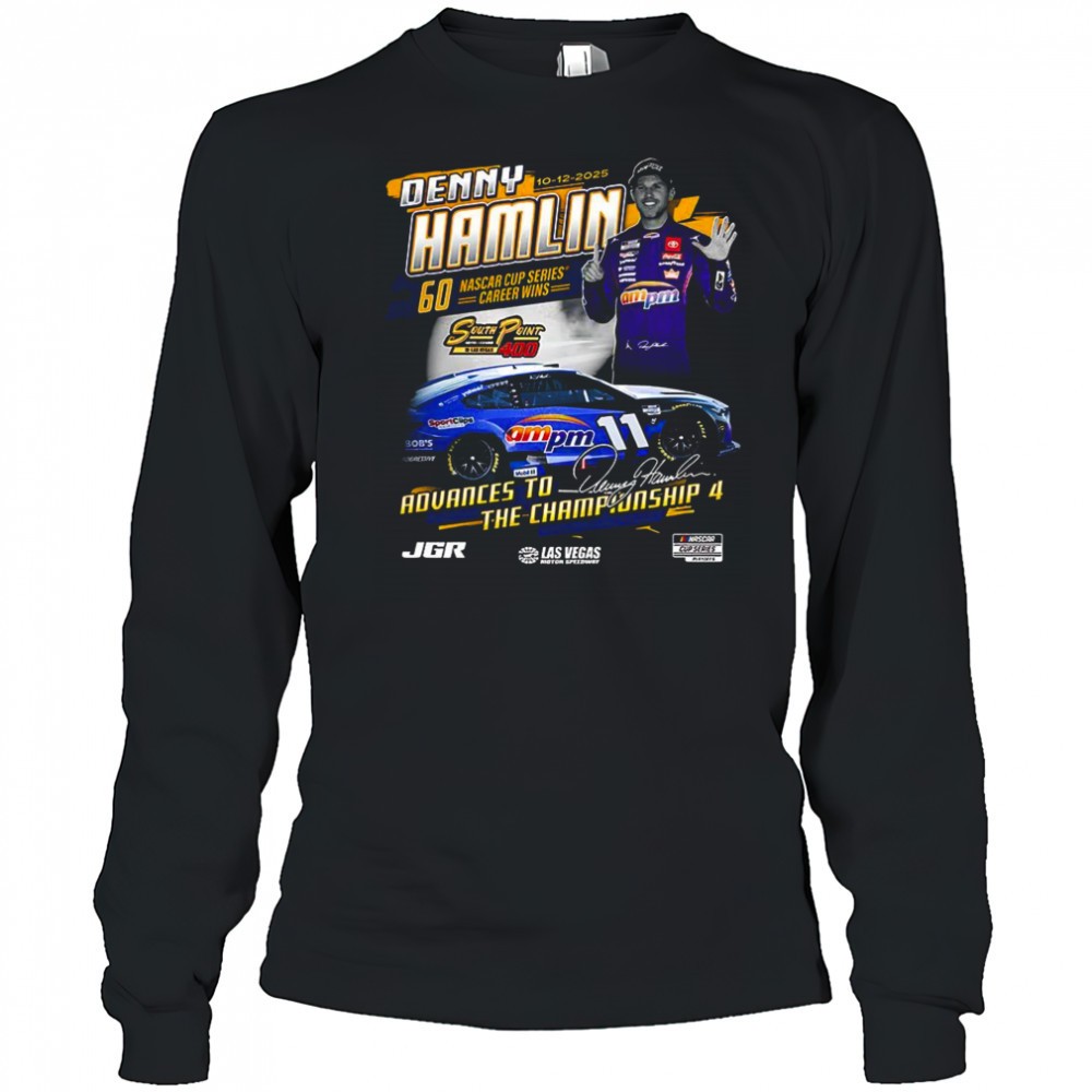 Denny Hamlin Checkered Flag Sports 2025 South Point 400 Race Winner signature shirt