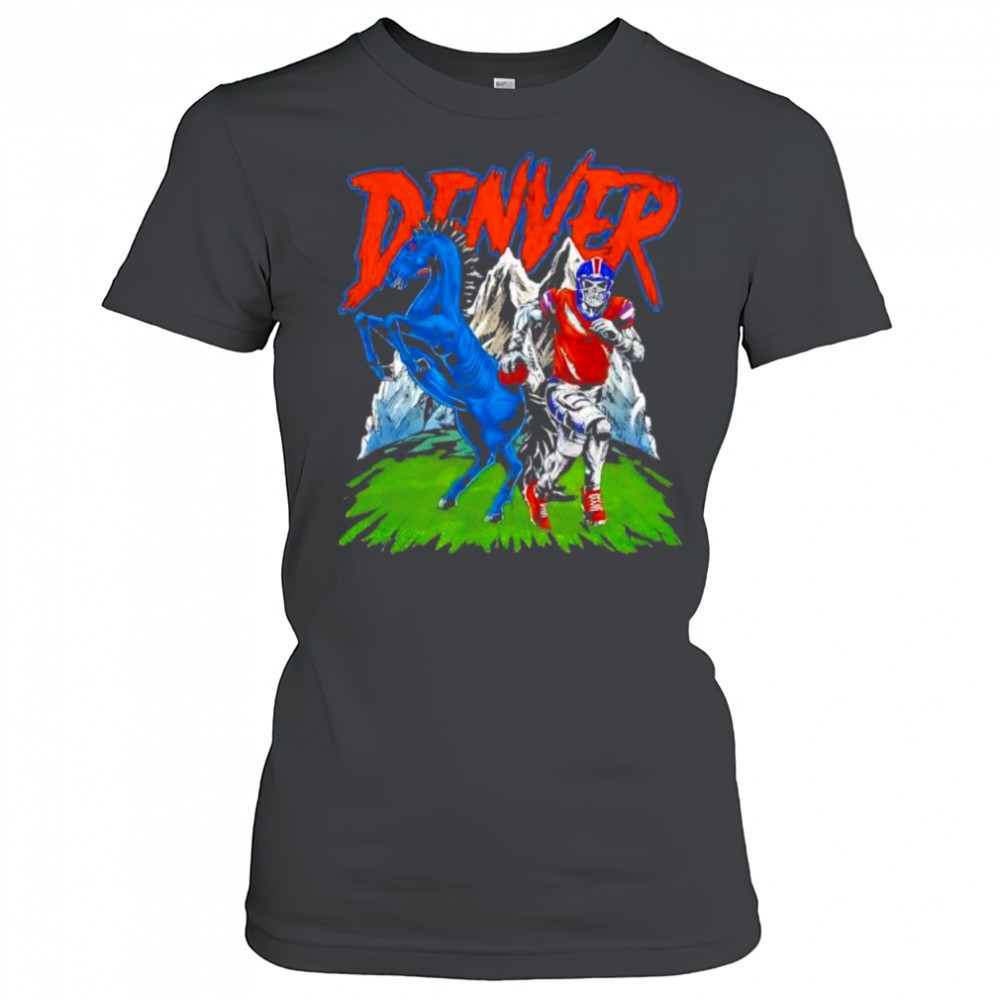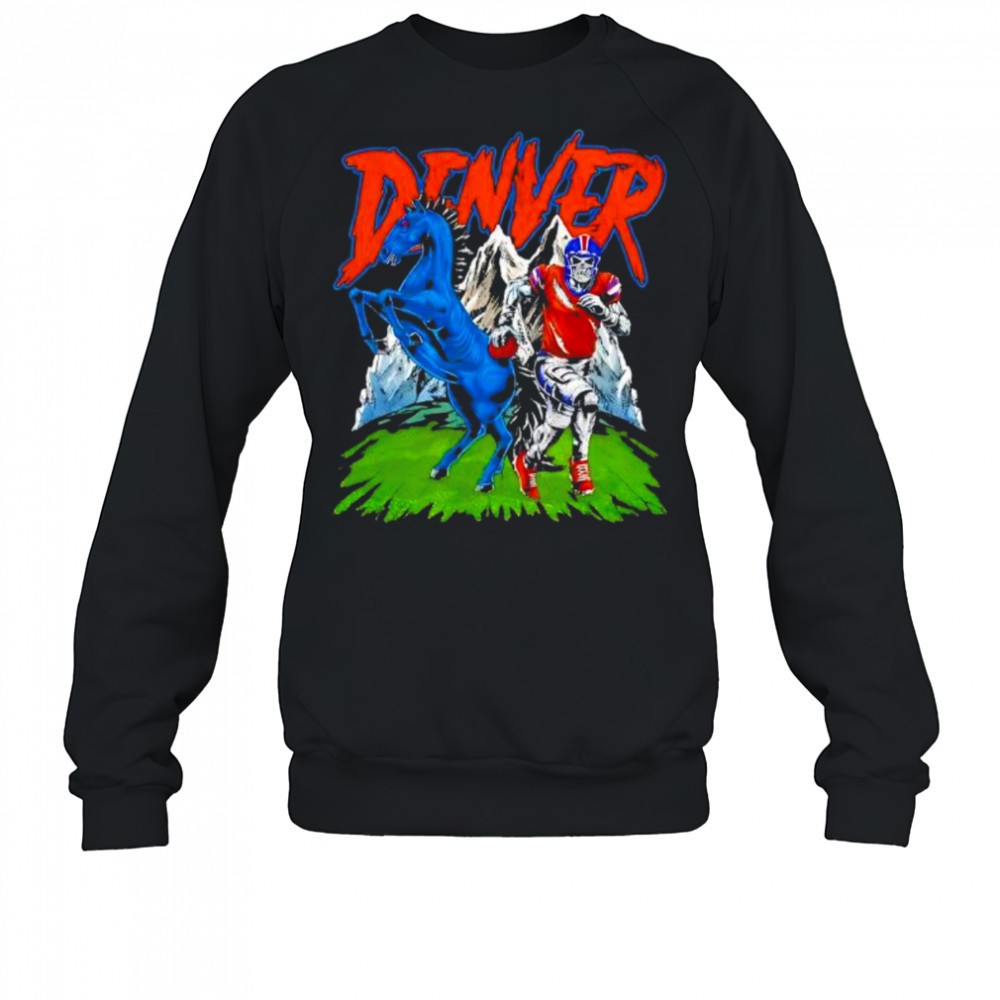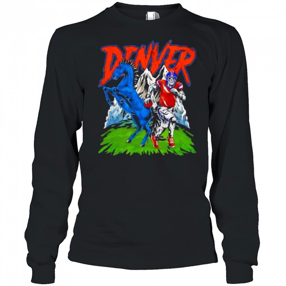 Denver Broncos Skeleton Running with Blue Horse shirt