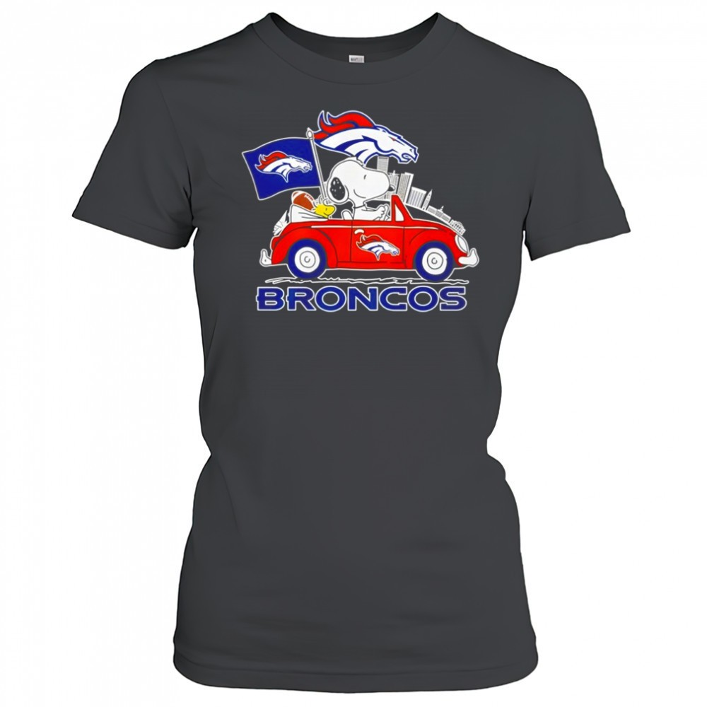 Denver Broncos x Snoopy and Woodstock driving car shirt